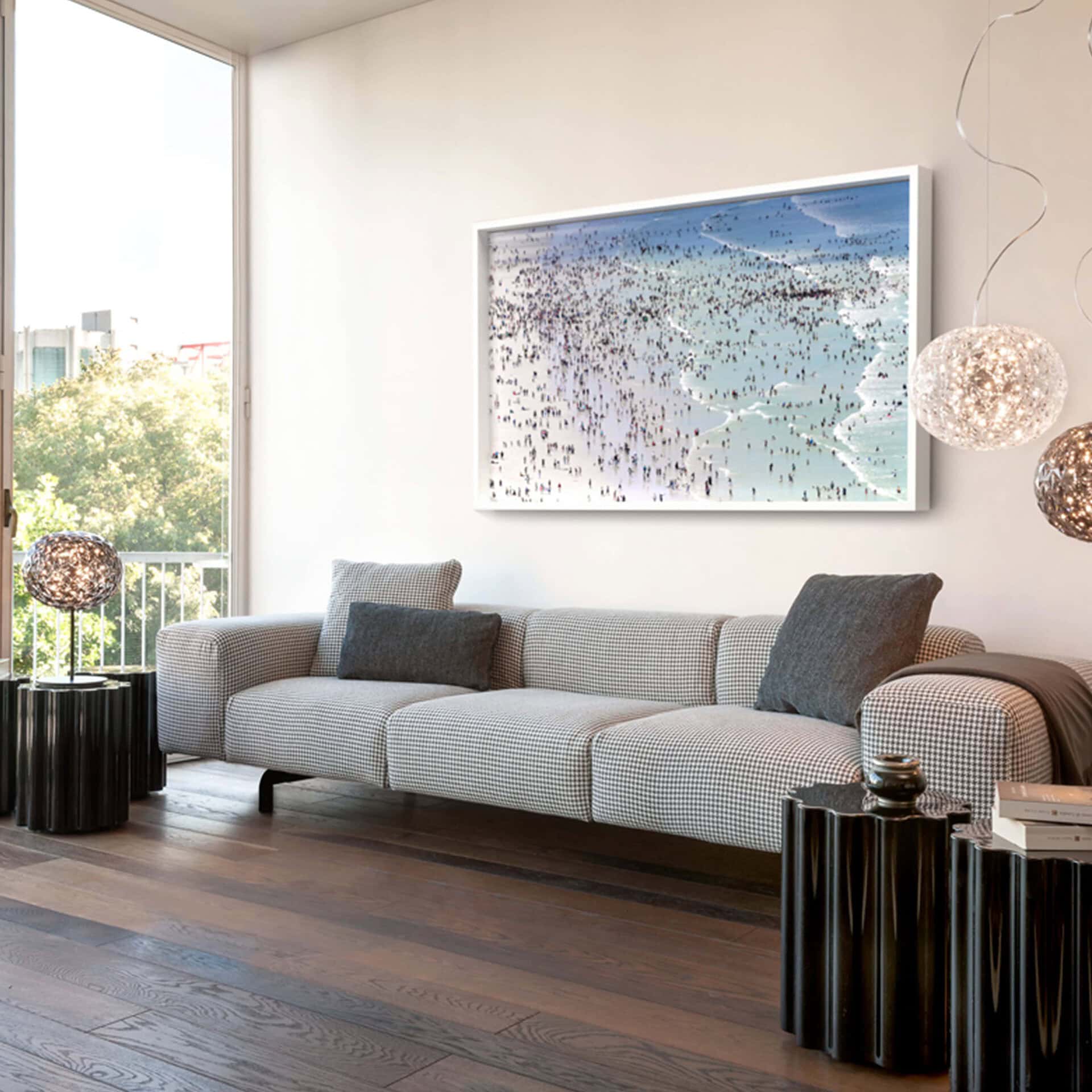 The Plastics Duo 3 Seater Sofa by Kartell is characterized by its exemplary craftsmanship and upholstery detailing in a much larger form.