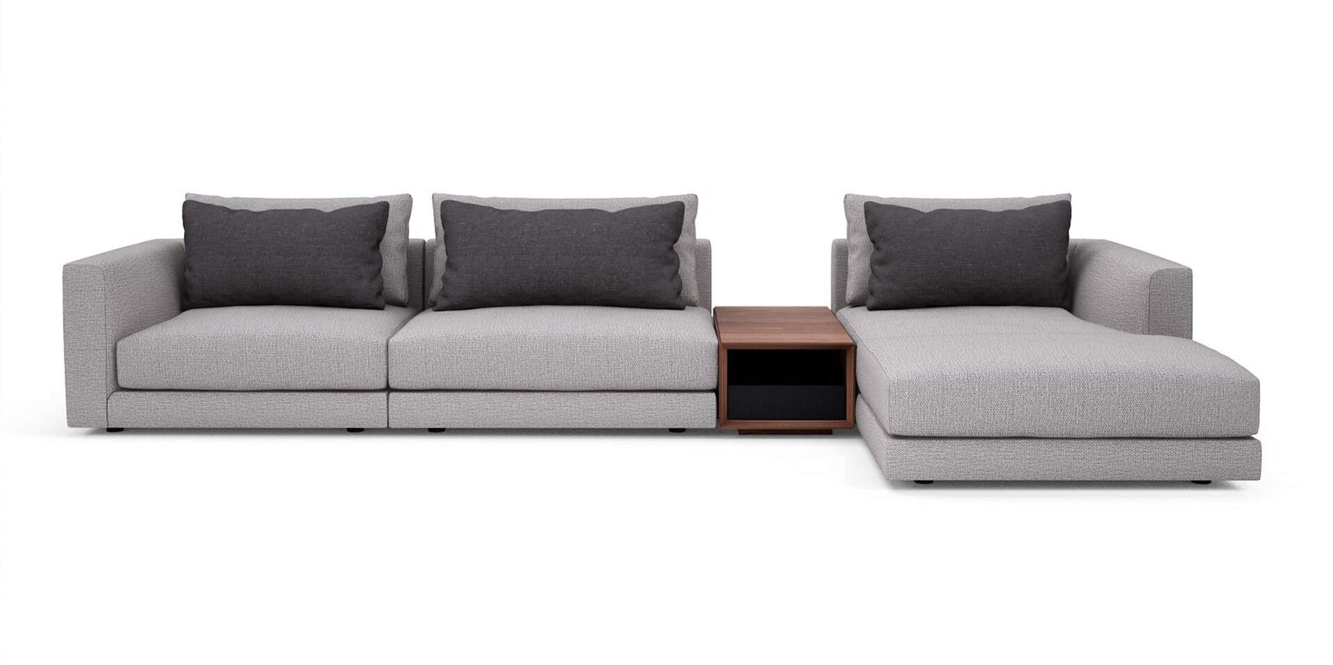 The Edward Sectional is a great way to bring the contemporary look of Edward Collection furniture into your living room. This sectional features lacquered open storage compartments and is supported by a lacquered steel base to provide a light and airy feel.