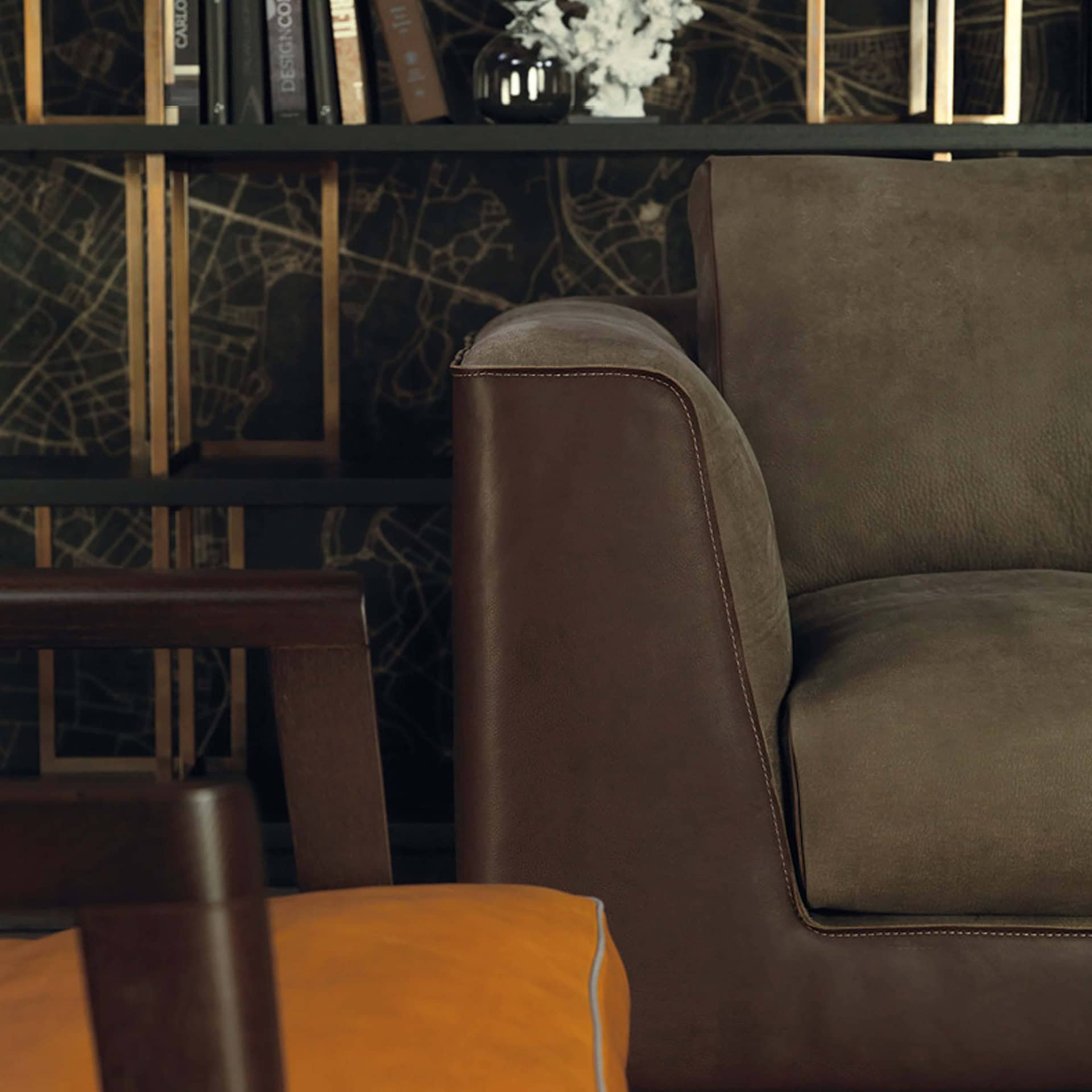 This sofa is an exclusive meeting between the heart of soft, upholstery and leather that encloses it. It’s defined by a raw cut finish—a revival of a ‘par excellence’ classic for today's contemporary lifestyles. The encounter of contrasting materials and colors—vegetable-tanned leather, textiles such as linen or wool felt fabrics with added vanguard treatments. A clean design sofa that is perfect for large hospitality spaces