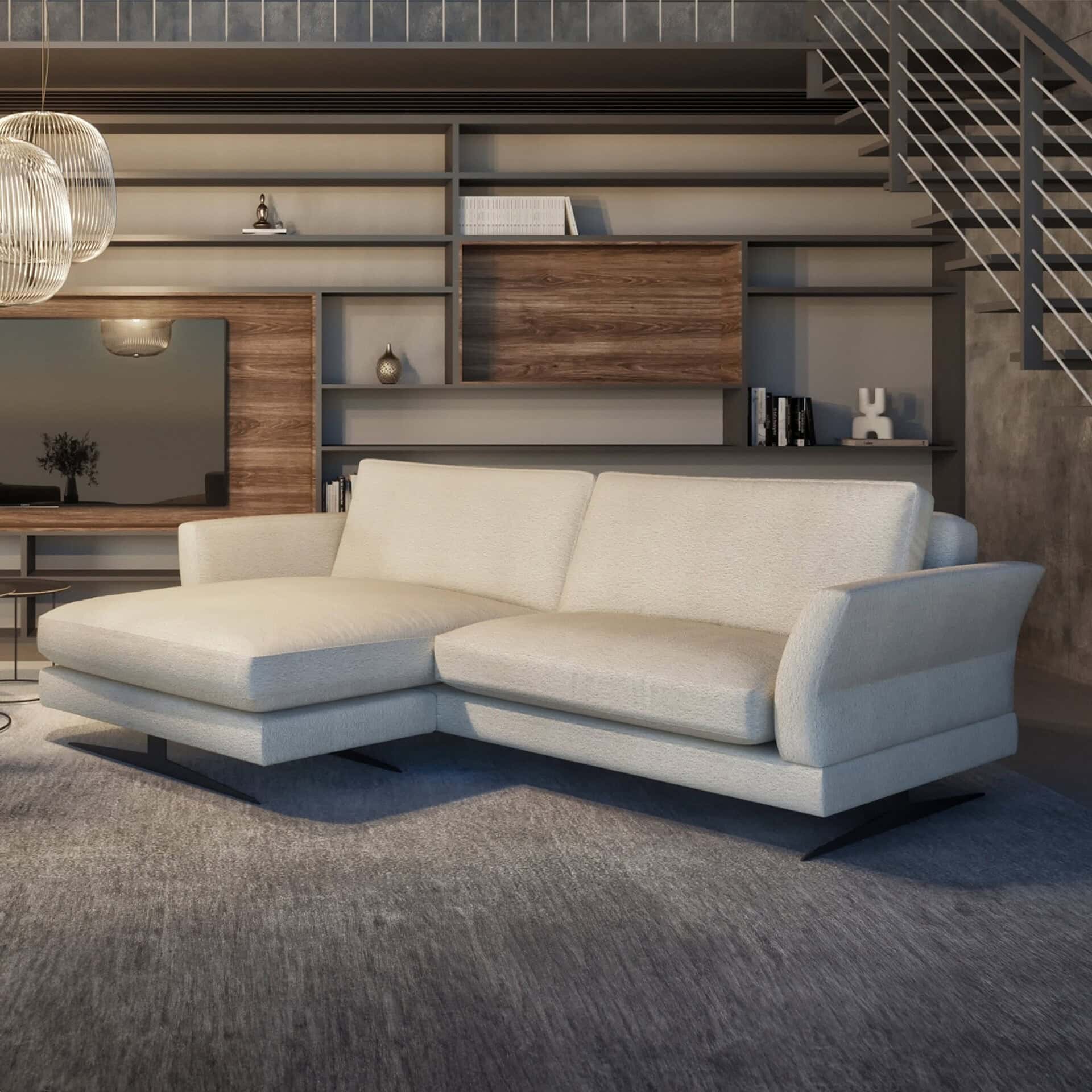 Its extra-wide seats and versatile lounge provide ample space for relaxation, with the ability to place the lounge on either side for maximum flexibility. Tailor this piece to your aesthetic with a wide selection of cushion fills and fabrics, making the Stratus Sofa a truly personalized centerpiece for any modern living space.