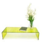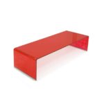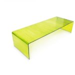 The striking and simple Brug Coffee Table is a stunning and lightweight piece made of 10mm extra clear curved glass, with anodized aluminum support rails for its bottom and glass edges with plastic bumpers. Available in a variety of colors and finishes. Warranted to meet or exceed industry standards.