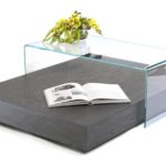 A minimal piece with two components, a wooden base and curved glass surface, the Levita Coffee Table provides ample display space for the living room.