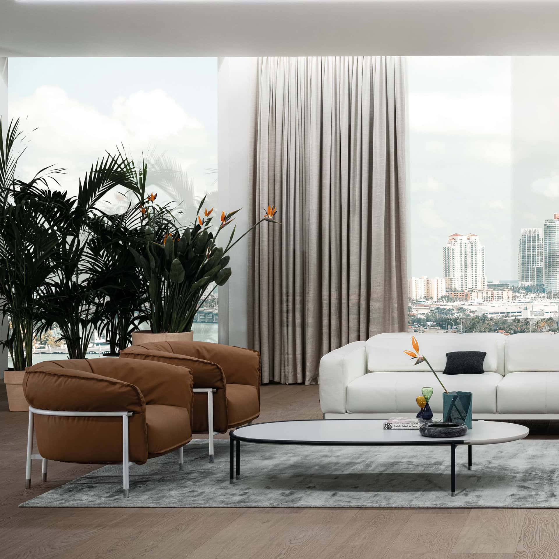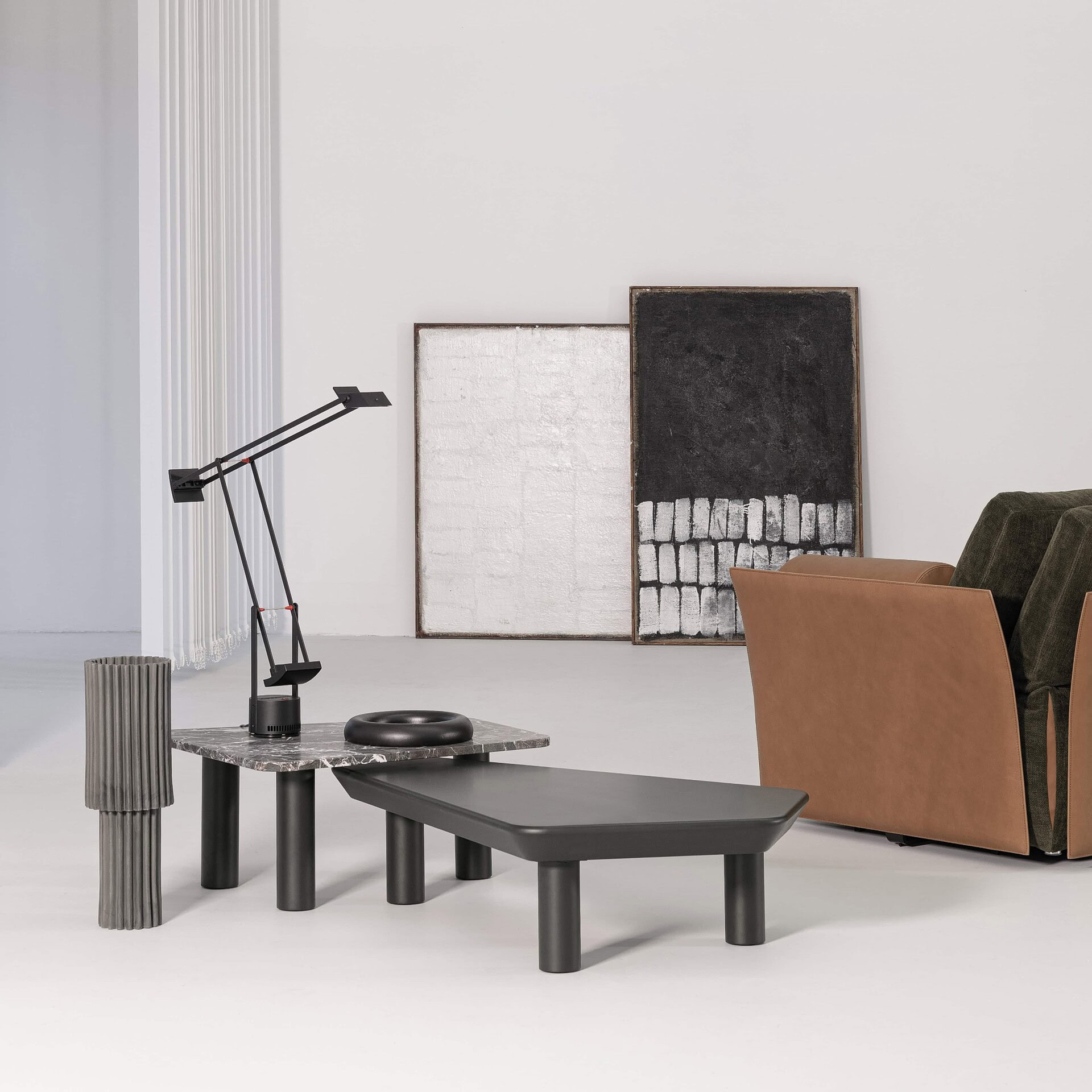 A blend of Laurel & Hardy's irreverent style and elegant design creates a graceful design. This coffee table collection is perfect for both the busiest living room in your house, as well as the most peaceful corner of your house. The leather edge contrasts perfectly with the ceramic top with a marble effect, so you show a strong personality. Each one is its own coffee table, whether it is a round or square one, high or low, small or large.