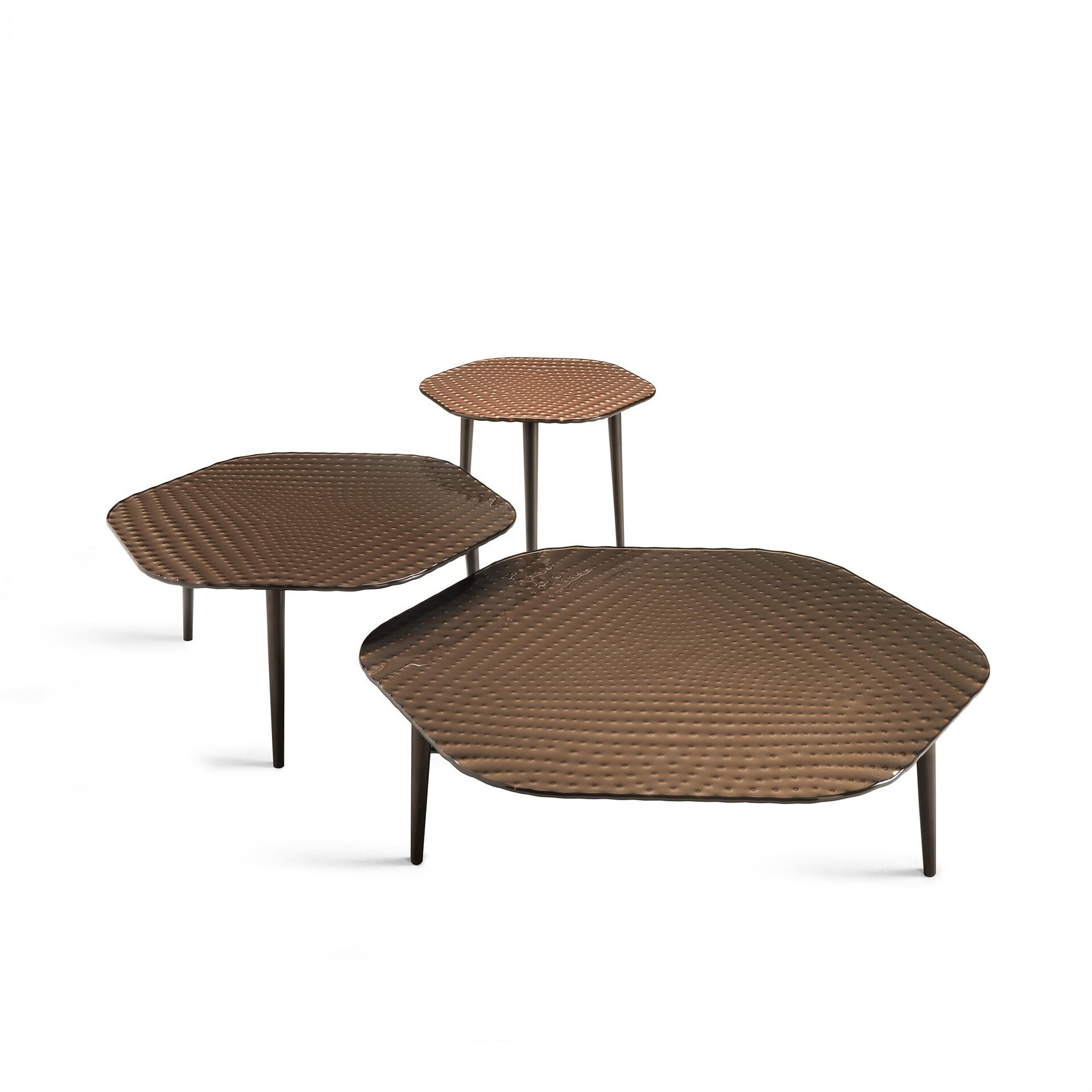 Inspired by the fluid erosion of coastal stone, the Coral Beach Glass Coffee Table translates organic movement into sculptural Italian design. Its softly contoured silhouette evokes tide-shaped rock formations, while the subtly textured surface creates depth and light refraction that shifts throughout the day. Whether displayed as a singular statement or layered in nested compositions, Coral Beach introduces a refined sense of motion to contemporary living rooms and hospitality interiors.