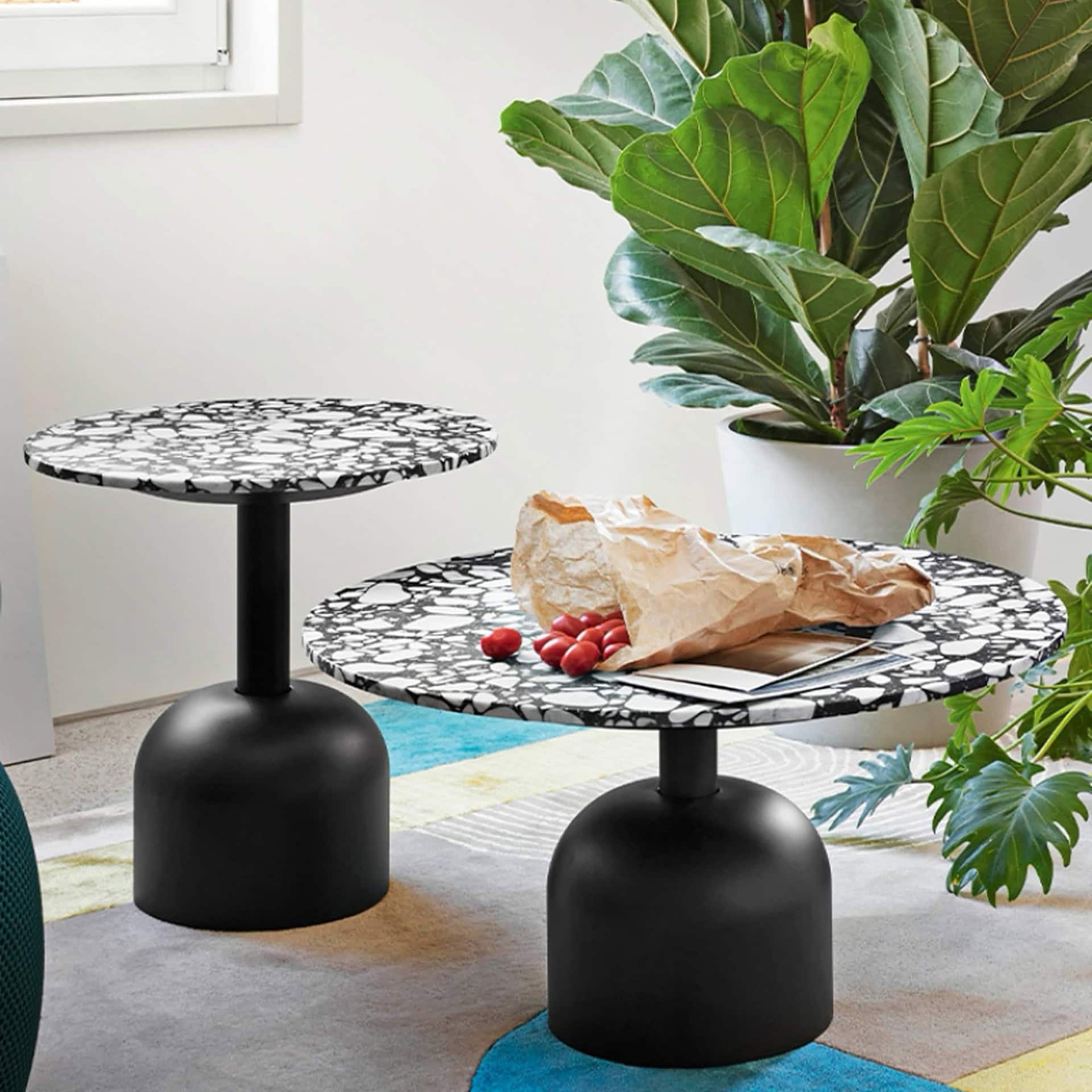 Available in an extensive palette of lacquers and stone tops, Illo’s ample selection of finishes reveals endless possibilities for personalization. Its paired tables—each supported by a sturdy, sculptural base—become striking accents in both residential and professional settings. Whether dressed in luminous lacquer or adorned with elegant materials like Palladio, Ceppo di Gré, or exquisite marble, Illo remains an expressive statement piece, balancing serious design with an unmistakable sense of fun.