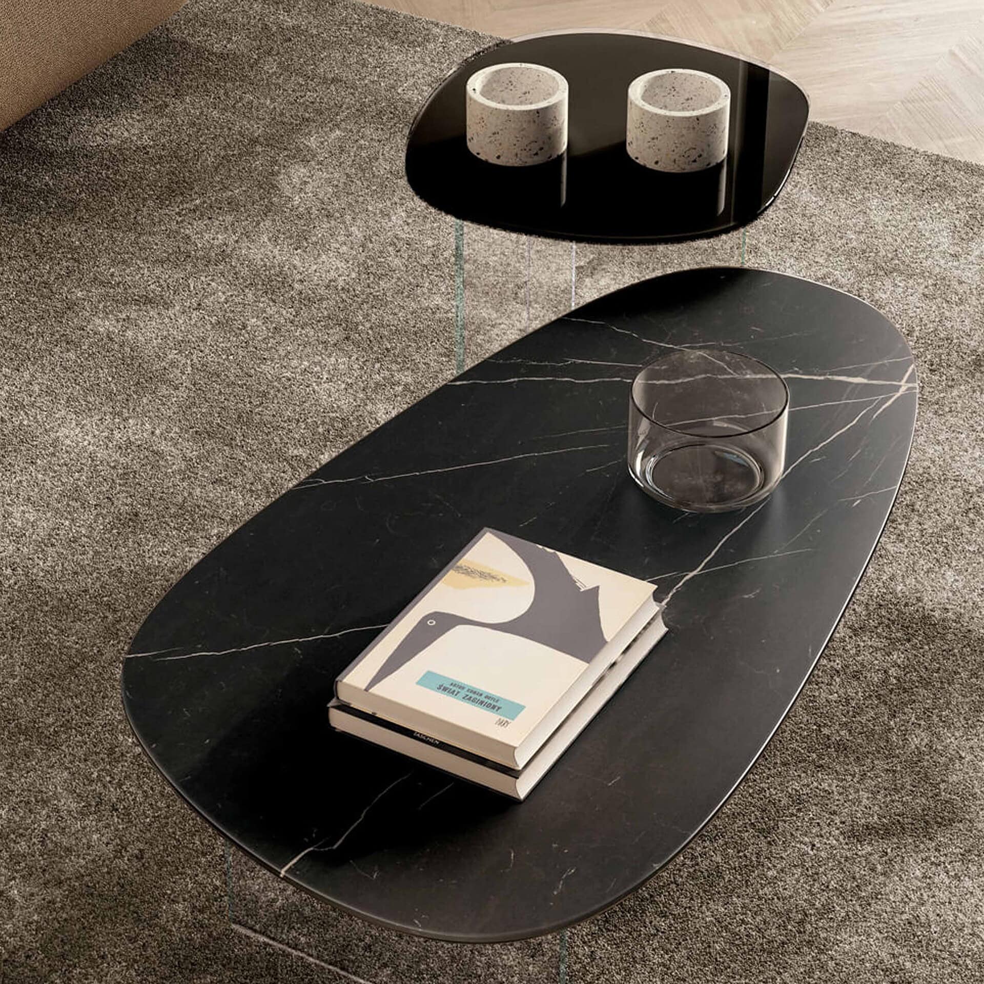 Relax in your living space with the Pleasure Coffee Table designed by Lago, featuring glass silhouettes inspired by nature.