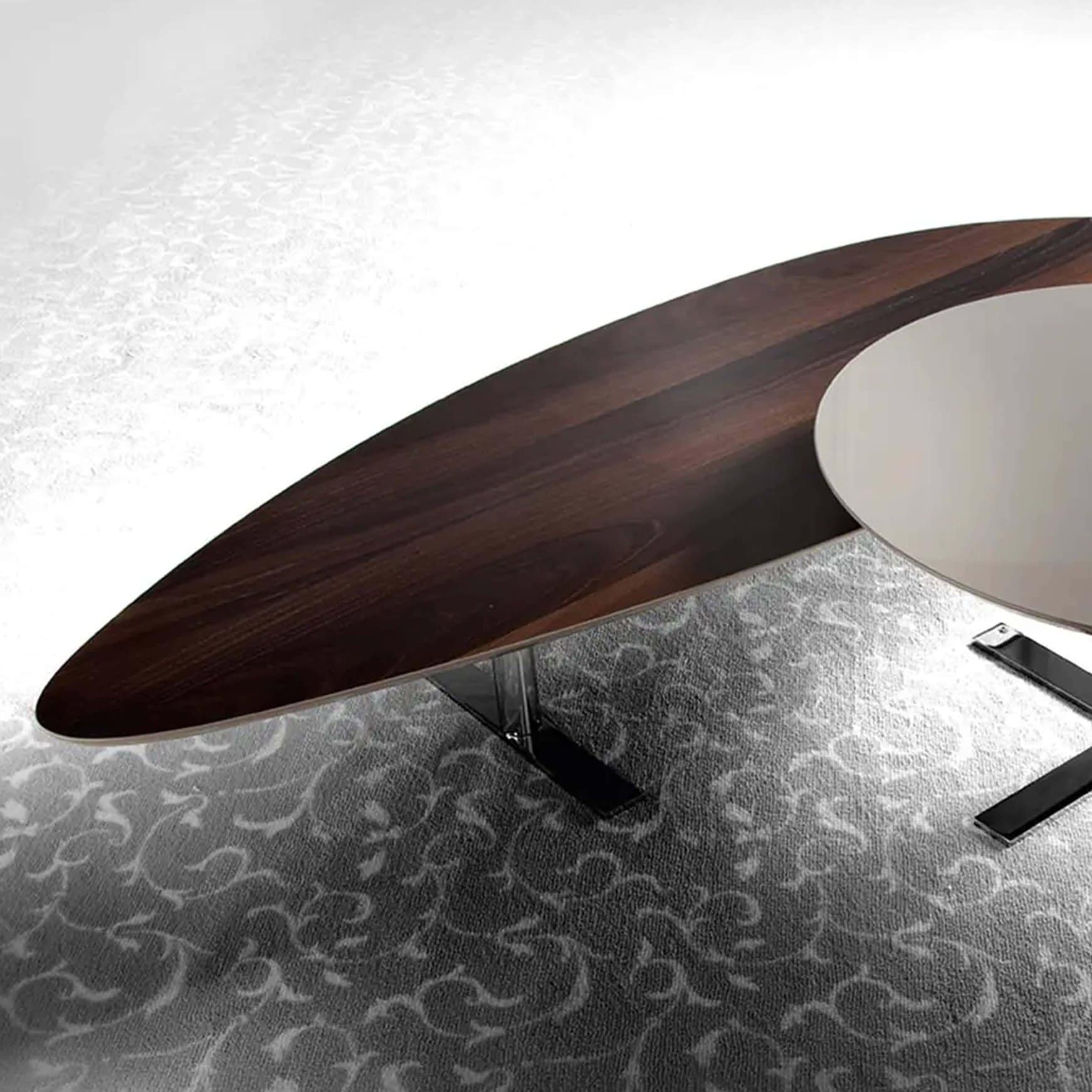 This unusual coffee table has beveled edges and an intriguingly long ellipse shape. The base of Lui, which comes in a variety of metal finishes, is the ideal complement to the Planet coffee table. Several opulent finishes for the base are offered and is available in a wood or lacquer finish.
