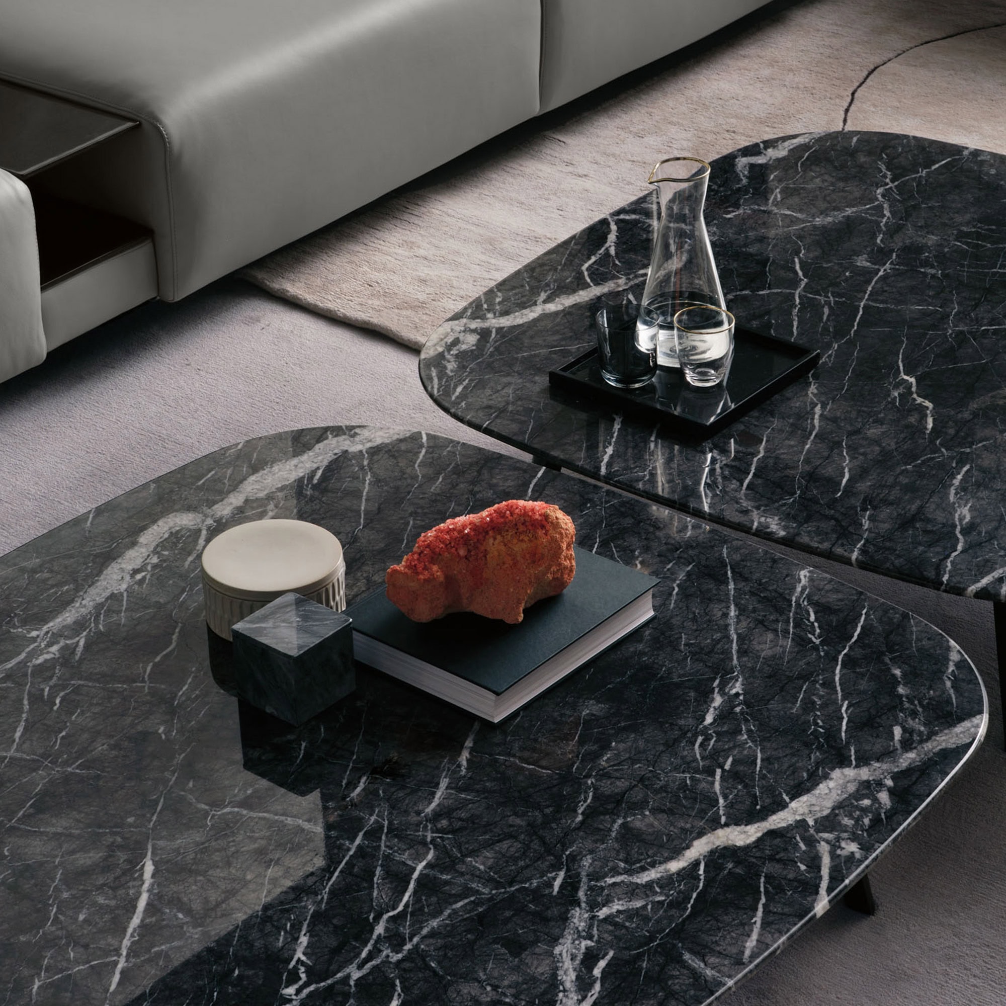 Designed by Patrick Jouin, the Magma Coffee Table is a bold yet refined centerpiece that seamlessly blends artistic craftsmanship with functional elegance. Its low, sculptural form features a distinctive solid wood base, providing warmth and structure, while the top — available in either rich marble or back-painted fused glass — adds a luxurious touch of texture and color. Whether placed in a minimalist setting or a more layered living space, Magma commands attention with its harmonious proportions and striking materiality.
