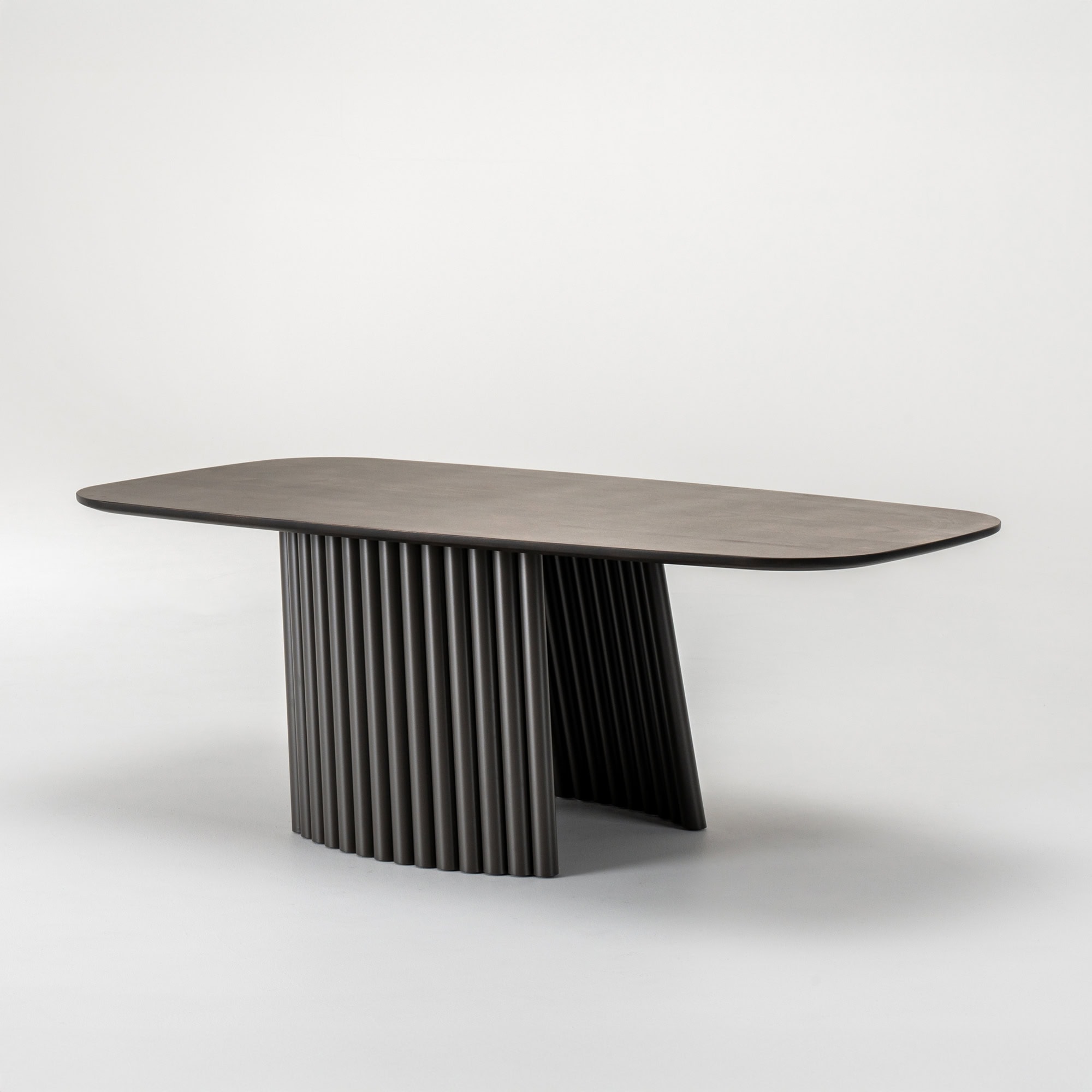 The Pisa Cocktail Table pairs architectural elegance with tailored versatility. Its curved fluted base creates a striking sculptural silhouette, grounding the design while adding visual rhythm. The elongated tabletop with softly rounded corners introduces a sense of flow, offering generous surface space while maintaining a fluid profile that complements both modern and transitional interiors.