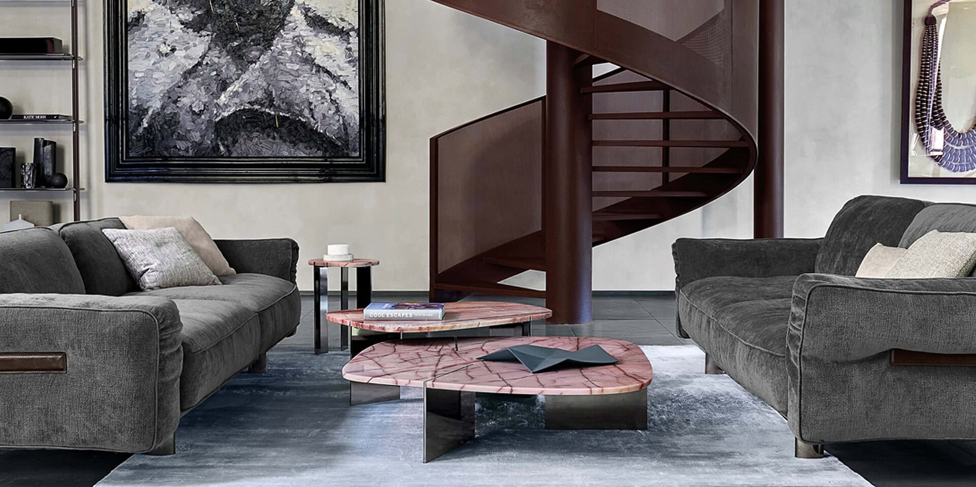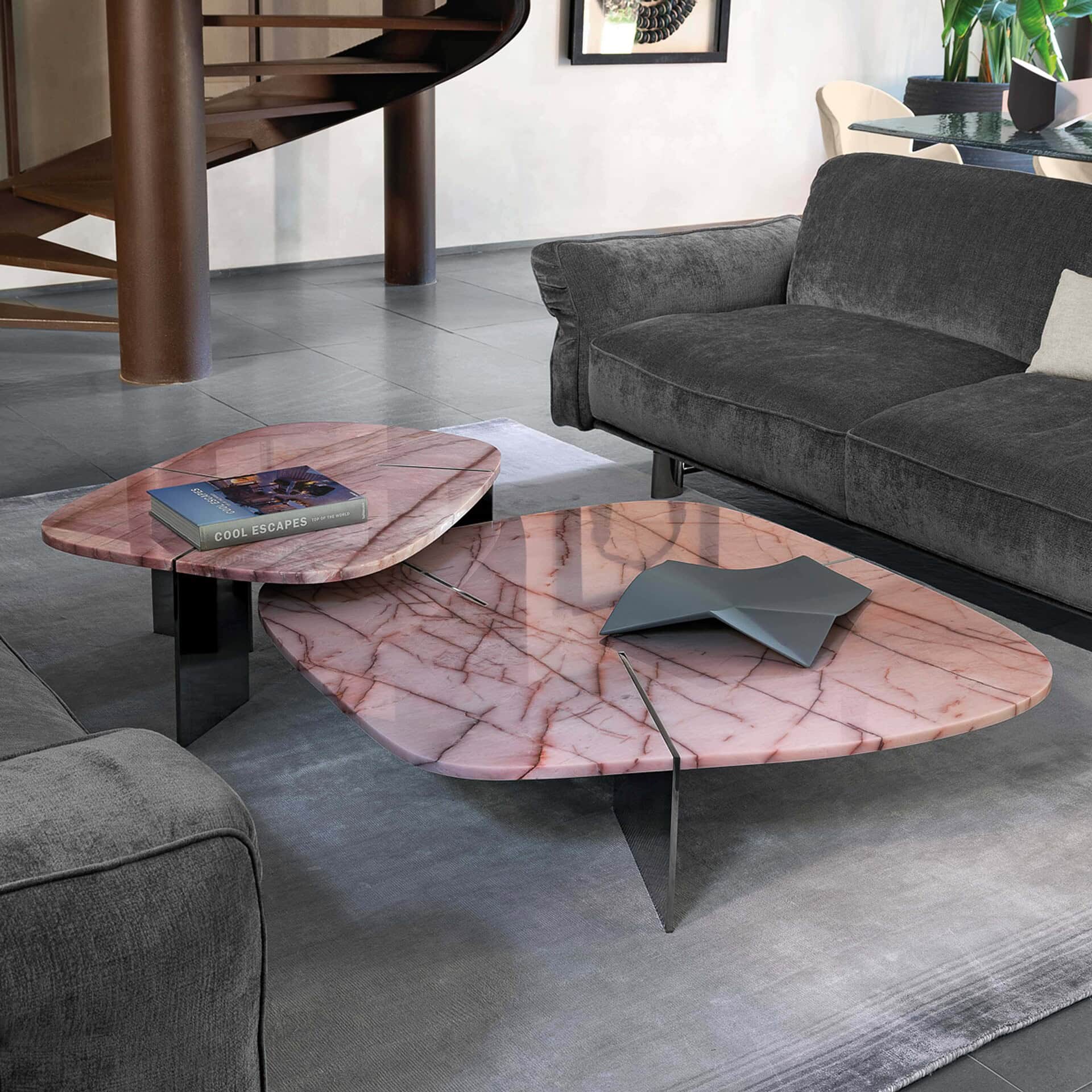 The Rumors Coffee Table is a sophisticated and refined piece of furniture sure to add personality and drama to any space. Crafted from natural marble, the top features three metal blades which are designed to contrast with and compliment the organic lines of the stone. This contemporary design creates an exquisite intersection of texture and depth that will awe the discerning eye. Available in a variety of unique and unrepeatable designs, no room or occasion will be complete without the Rumors Coffee Table.