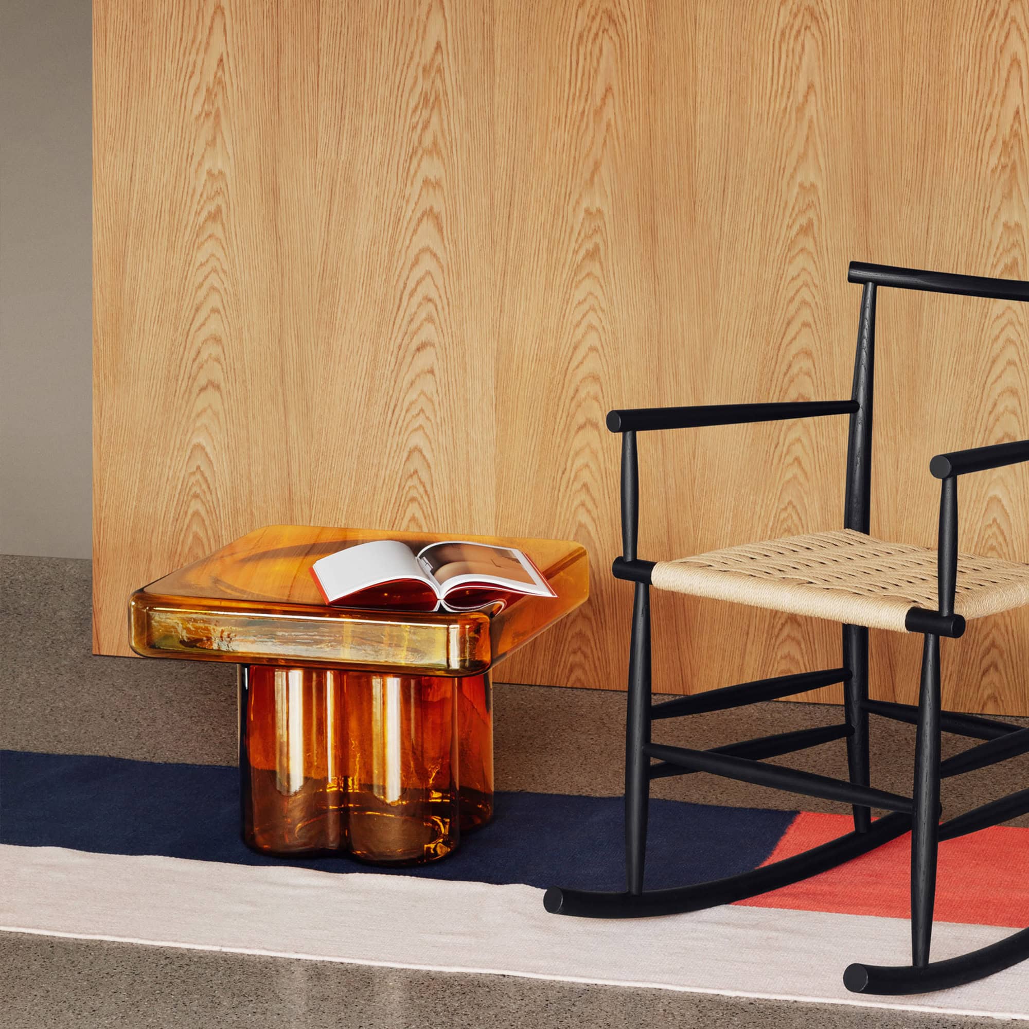 The Soda Square Coffee Table by Yiannis Ghikas reimagines blown glass artistry with a fresh, geometric form. Handcrafted from a single volume of glass turned upside down, its design features four rounded stems that seamlessly flow into the square top. The result is a bold yet transparent sculptural presence that catches the light beautifully, making it a striking centerpiece for any living space.