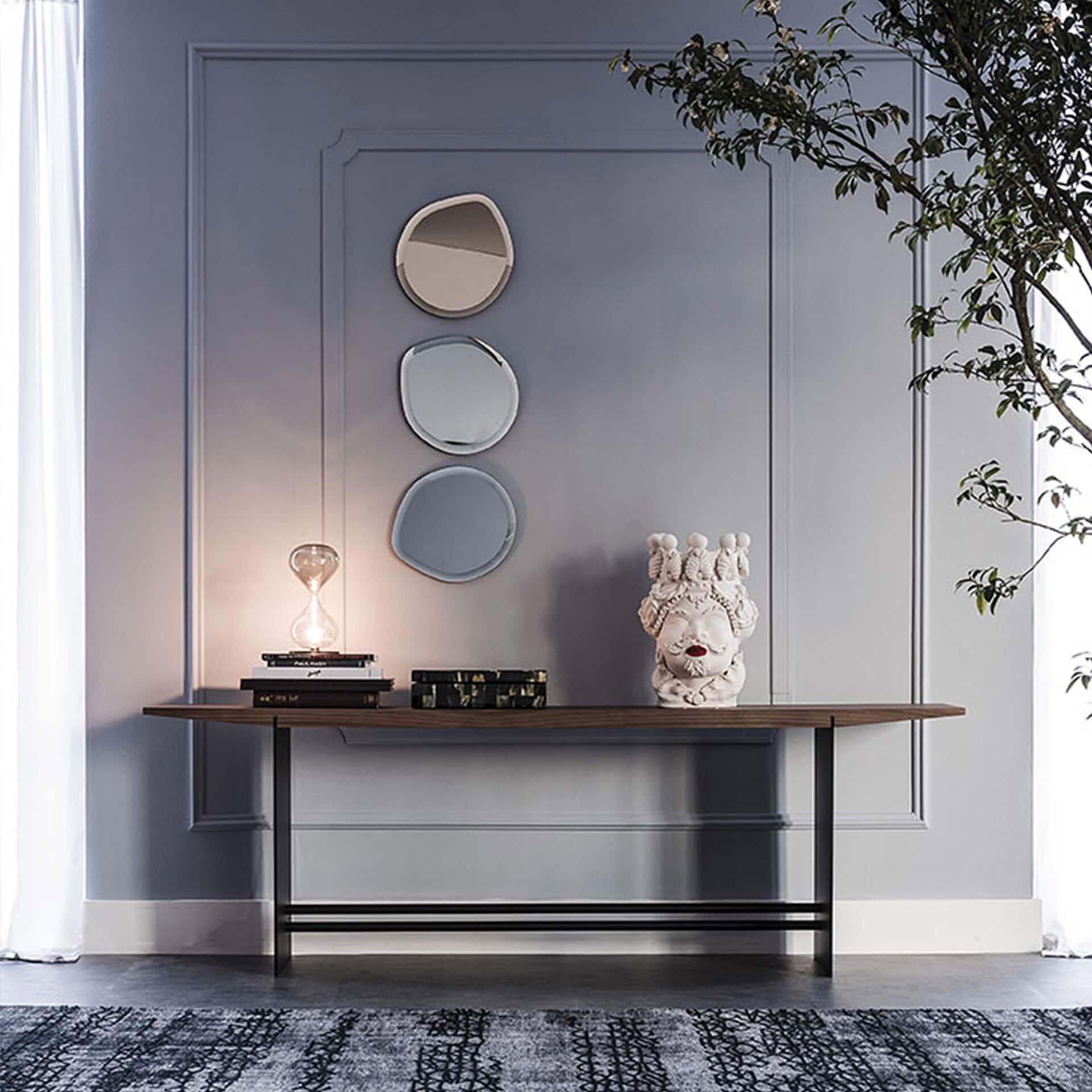Stylish and dynamic, the Trevi Console exudes a sleek, minimalist air. Its spacious top makes it easy to put decorative touches on display, while its lacquered steel base offers both contrast and stability. Made in Italy, this beautiful table is perfect for entryways, hallways, and dining rooms alike.