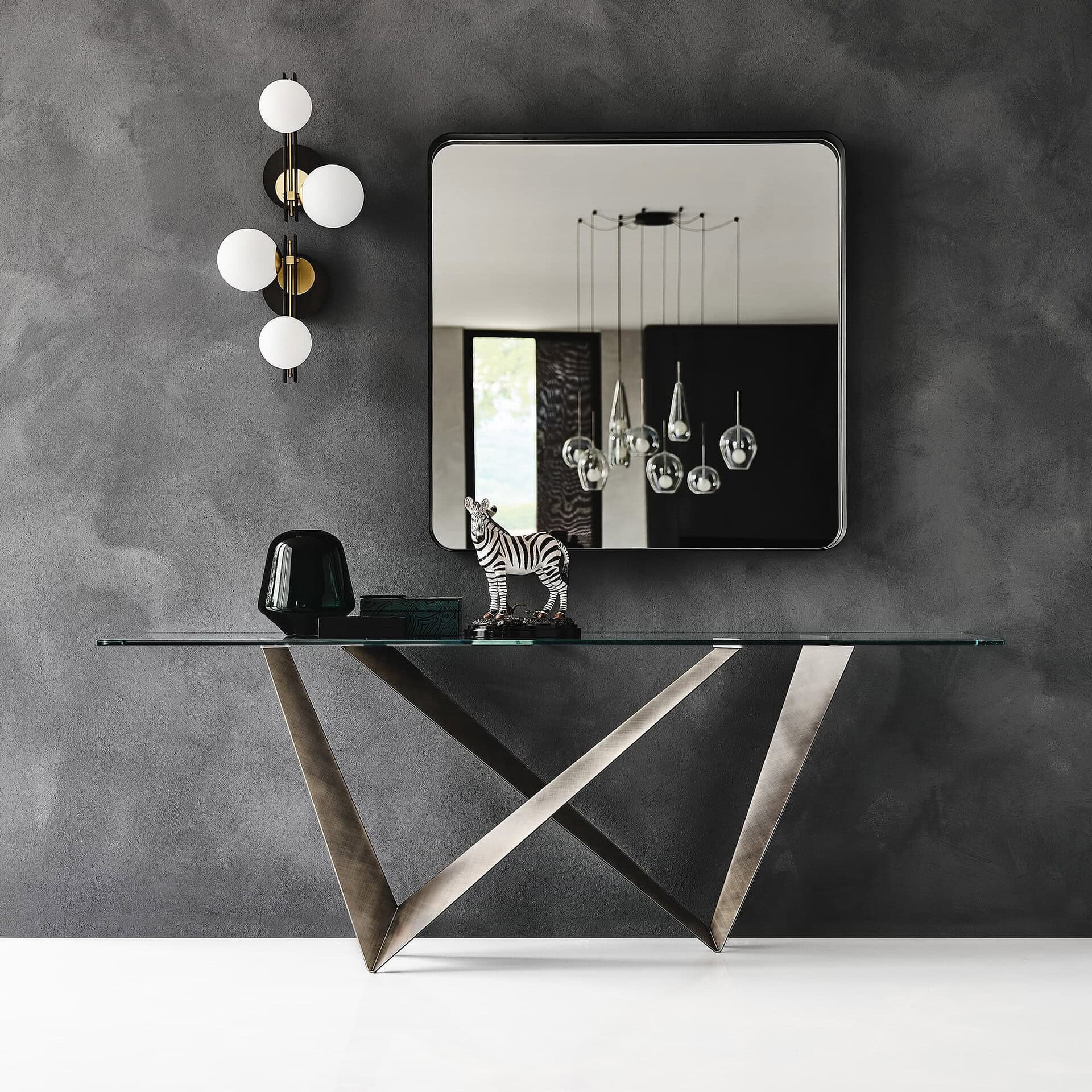 Stylish and dynamic, the Trevi Console exudes a sleek, minimalist air. Its spacious top makes it easy to put decorative touches on display, while its lacquered steel base offers both contrast and stability. Made in Italy, this beautiful table is perfect for entryways, hallways, and dining rooms alike.
