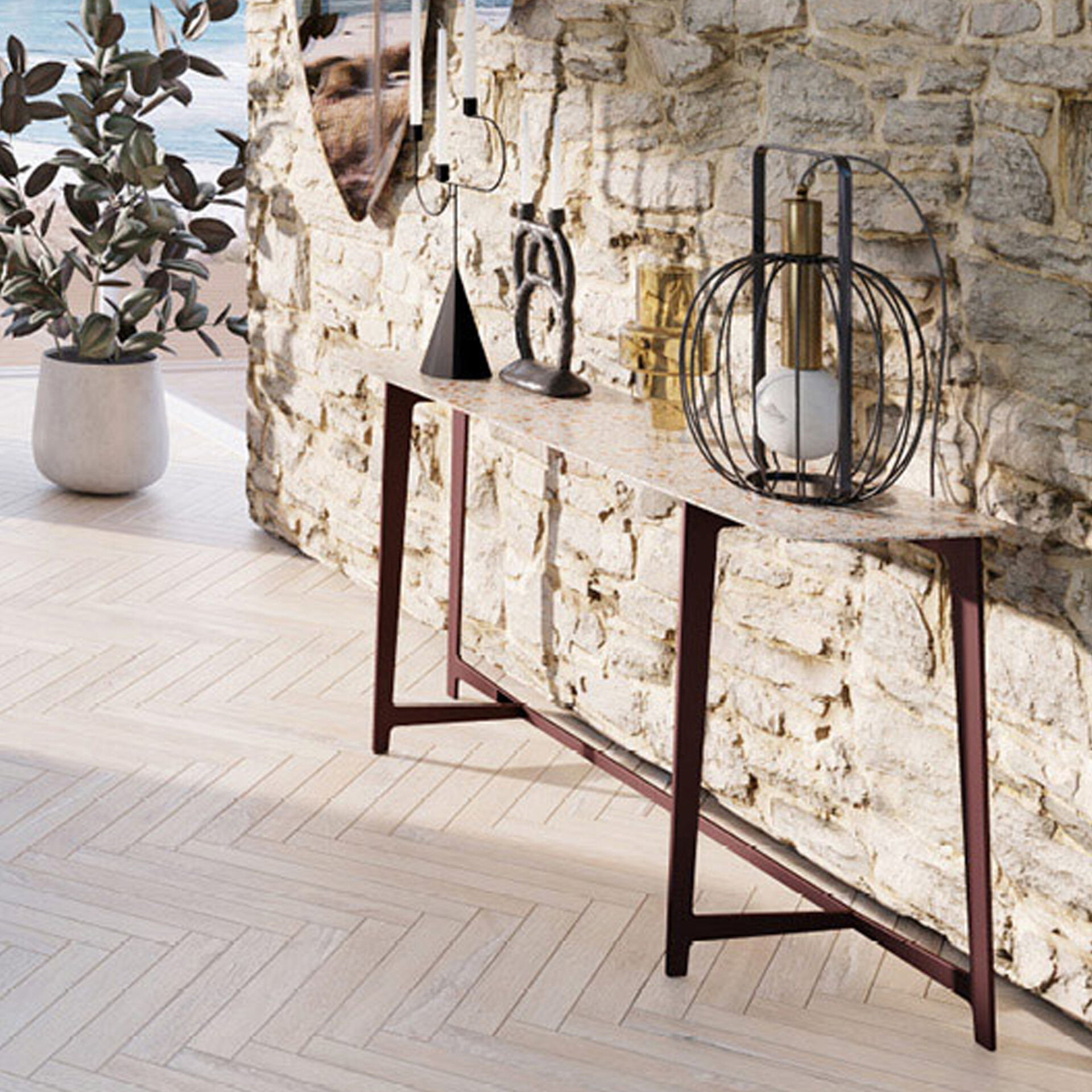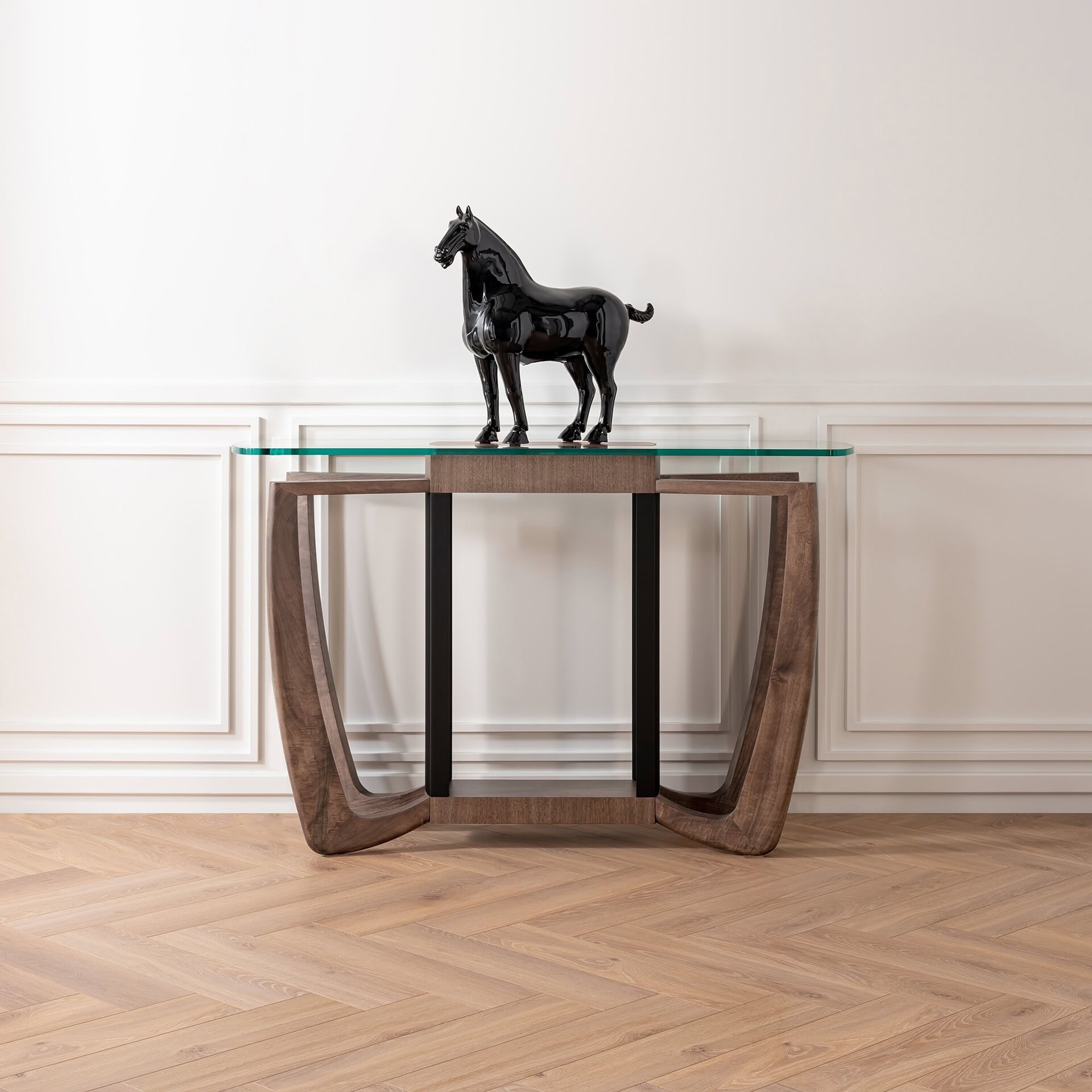 The B190 Console offers a minimal impact in terms of the volume – both visual and material – occupied by the complement. At the same time, it adds an extremely elegant piece of design to every composition.