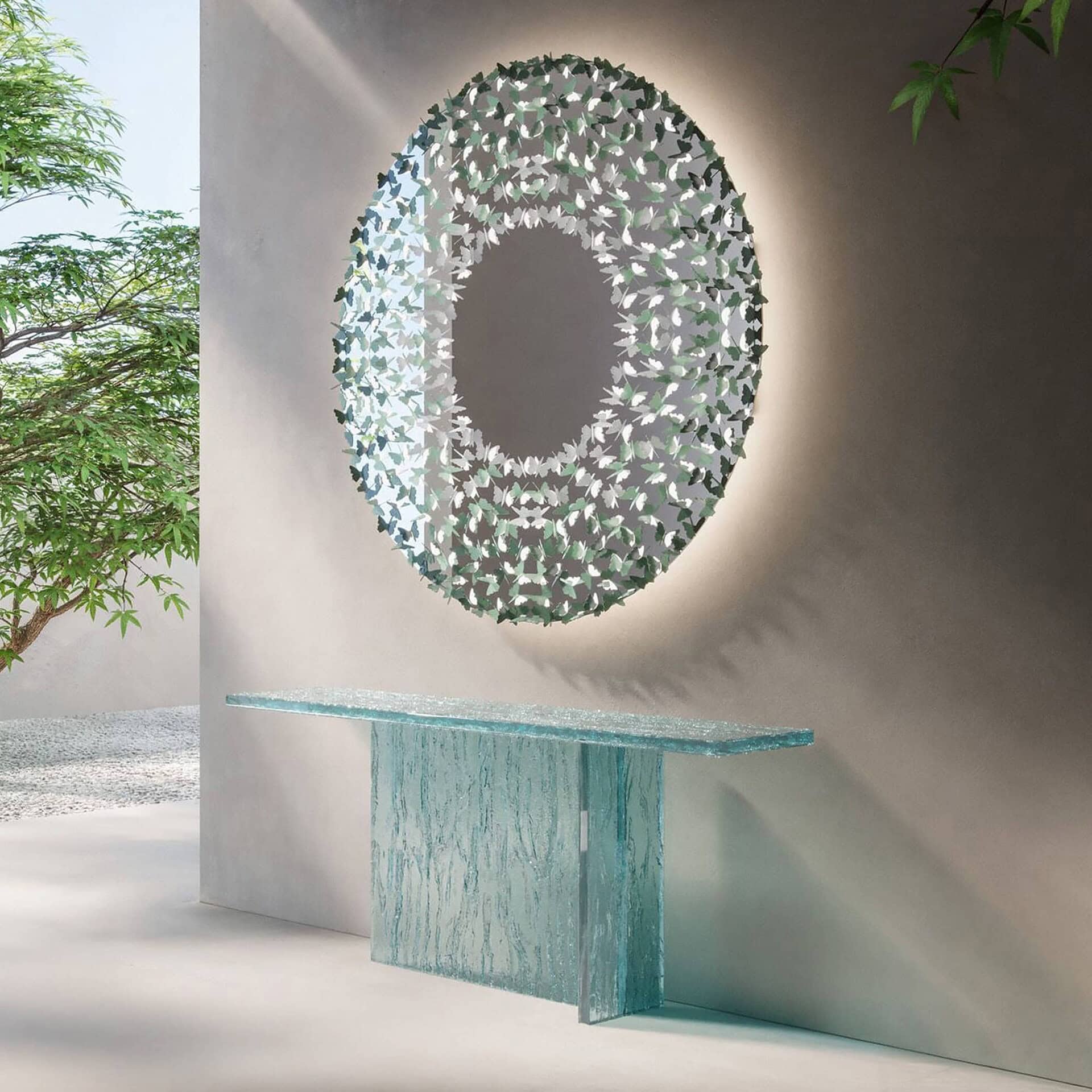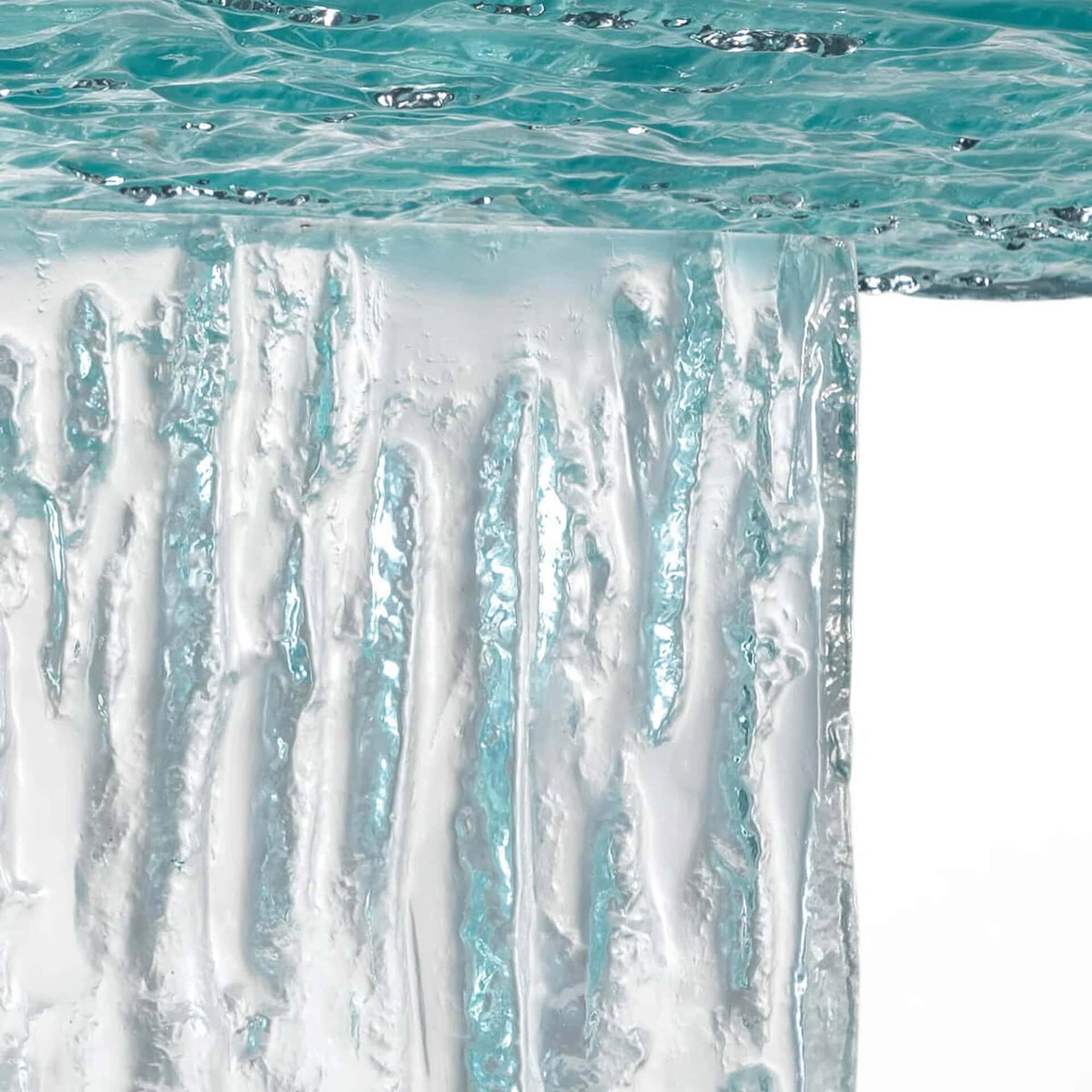 Material: Handcrafted from approximately 40 mm-thick molten glass, the Laguna Console showcases the artisanal expertise of master glassmakers. Each piece is individually shaped to achieve a fluid, organic form that evokes the natural movement of water.
