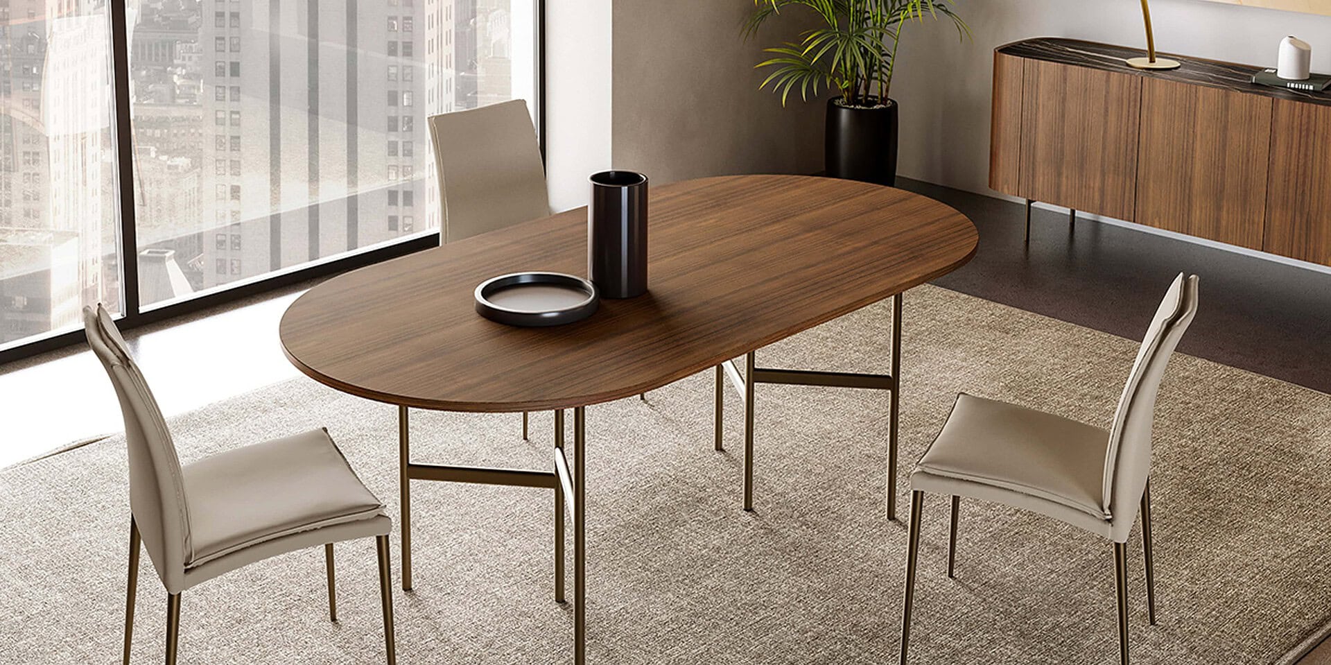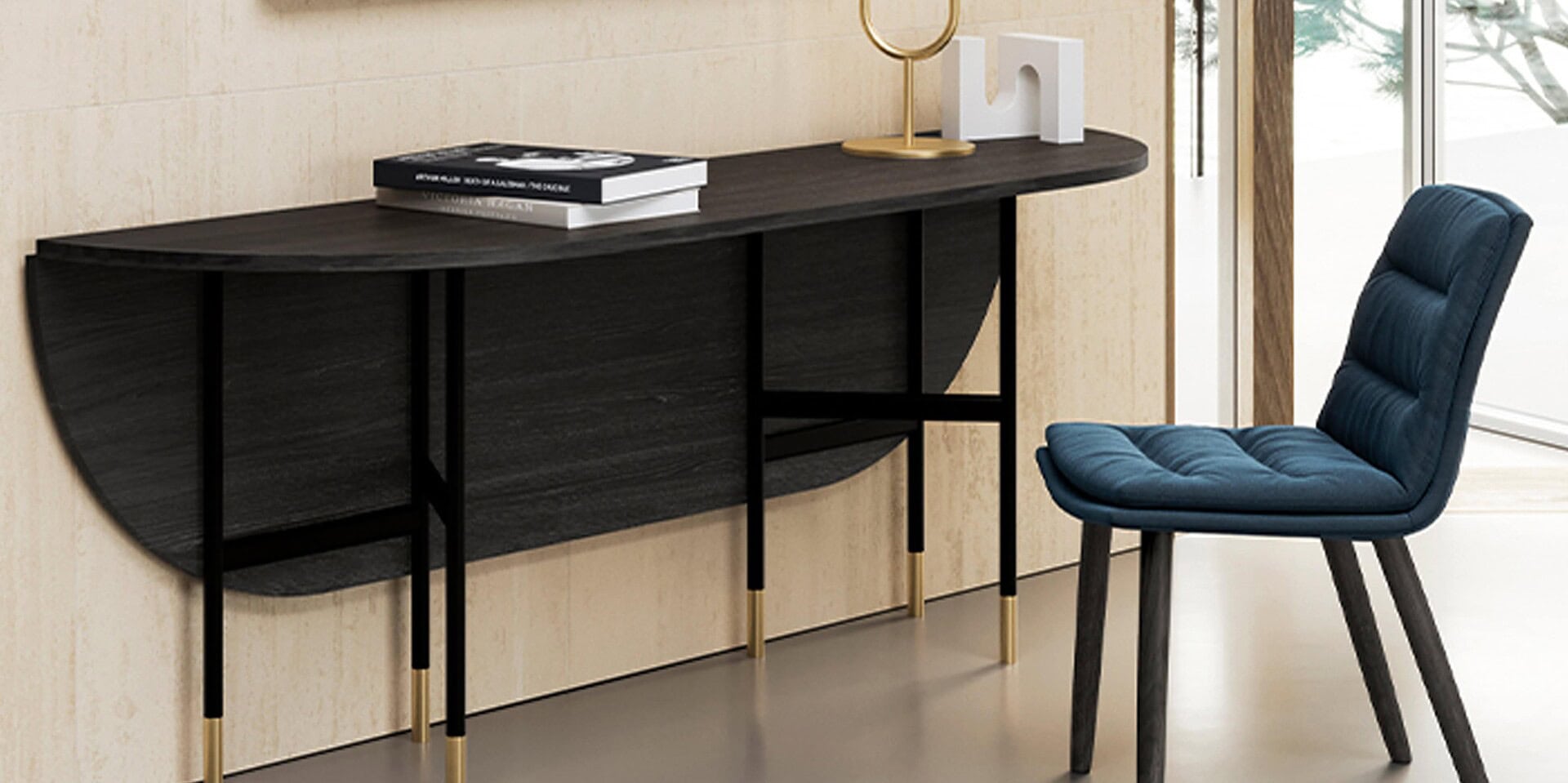The Magi Console is an extendable console table with metal painted base in monocolor or bicolor. This console is perfect for elevating any space within the home in a simplistic and modern way. The table features a veneered wood top in 20mm thickness.