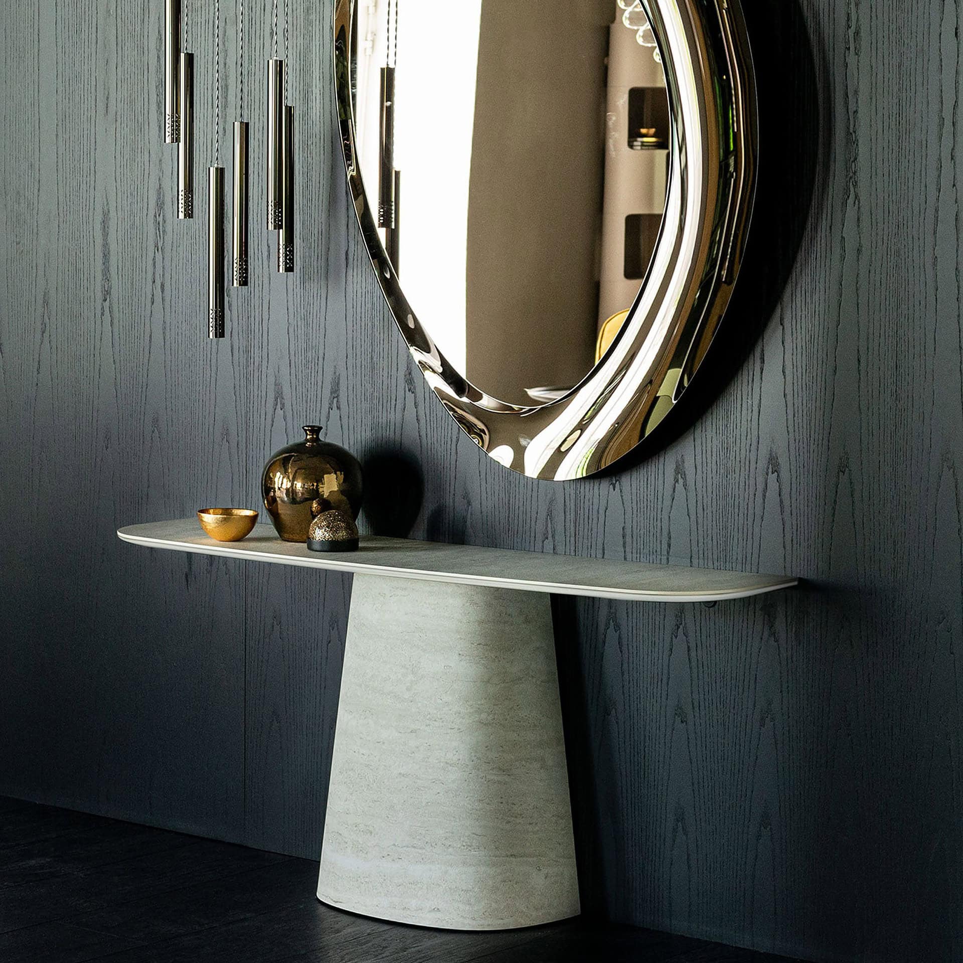 The Rado Sculptural Ceramic Console embodies minimalist sophistication with a sculptural edge, showcasing the purity and elegance of ceramic material. Designed with clean lines and a commanding presence, this console is crafted entirely from luxurious Marmi ceramic, lending a refined aesthetic to any interior setting. Its seamless construction and rich, matte finishes draw the eye to its natural textures and depth, creating a subtle yet powerful design statement.