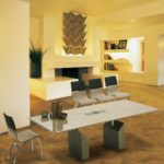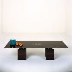The Academia Dining Table is offered in a variety of high quality finishes. The unique piece is complimented with different colored burlwood inlays within the table top. With angular legs and metal supports, the dining table is an eye-catching statement piece.