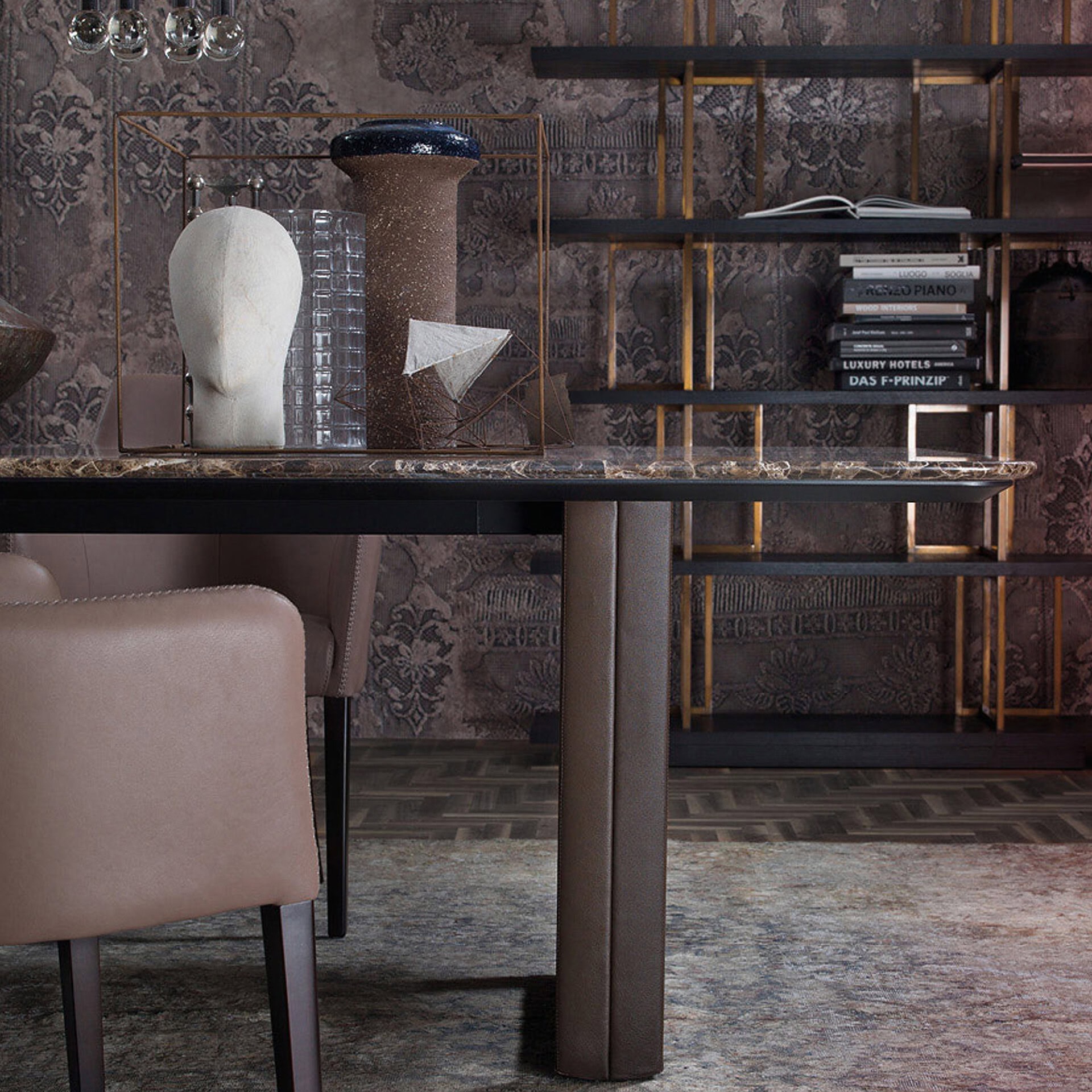 The B140 Table is a round table with or without lazy susy in precious materials such as marble for the top and leather-covered metal for the structure. B140 is the ultimate elegance of refined and sophisticated furniture.