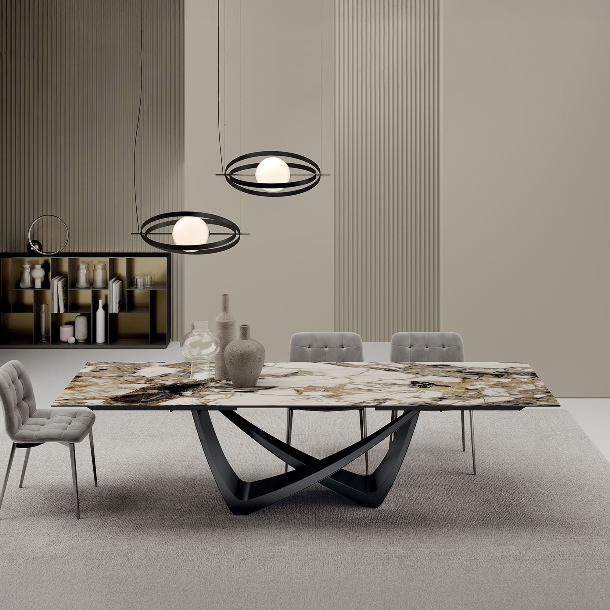 Crafted with meticulous attention to detail, the Bach Dining Table invites personalization through a curated array of ceramic finishes and metal base options, allowing you to create a look that seamlessly integrates into your space. More than just a dining table, Bach is an artistic centerpiece that elevates everyday rituals and special occasions alike. Paired with Bontempi Casa chairs, it forms a cohesive and elevated dining environment—one where sophistication meets comfort in effortless harmony.