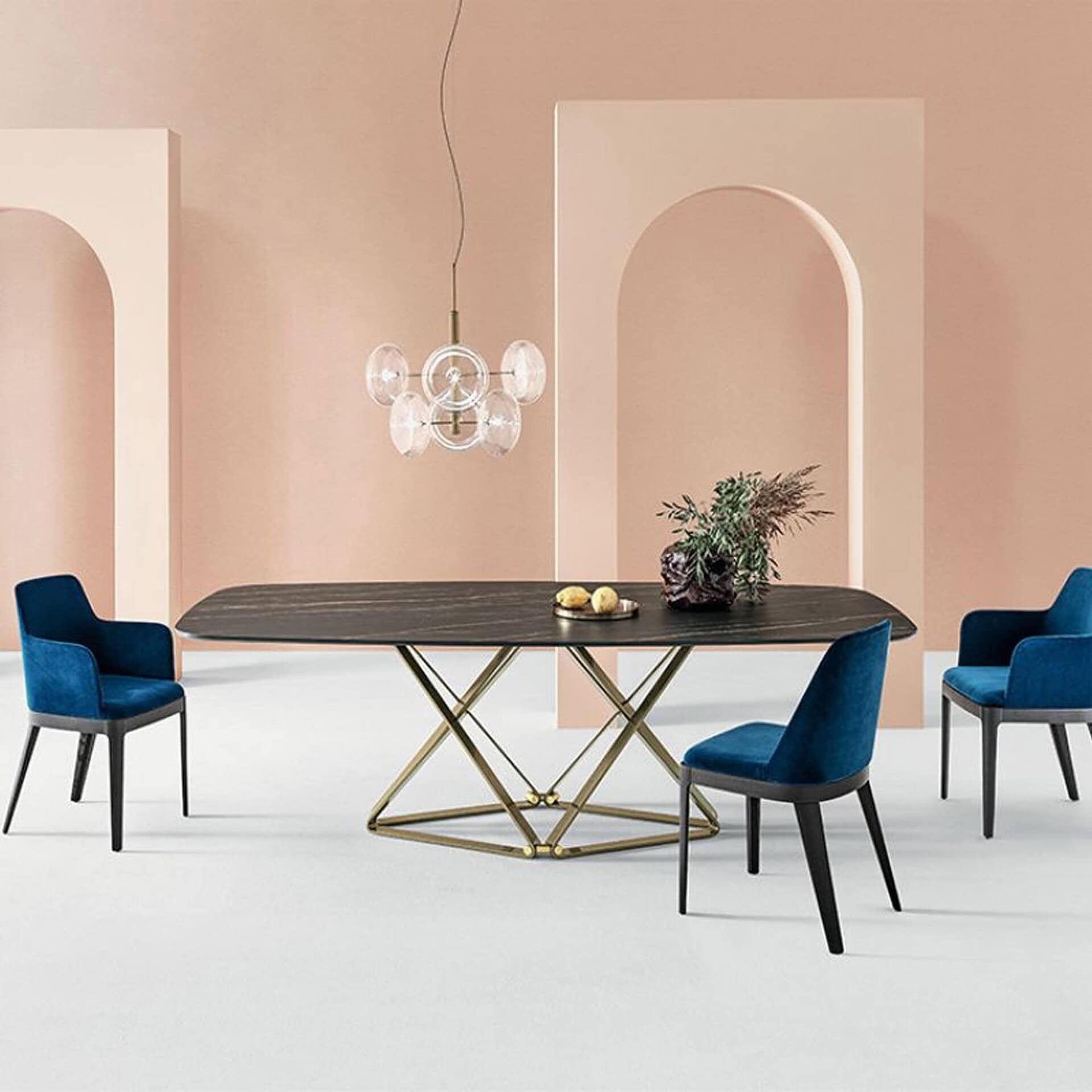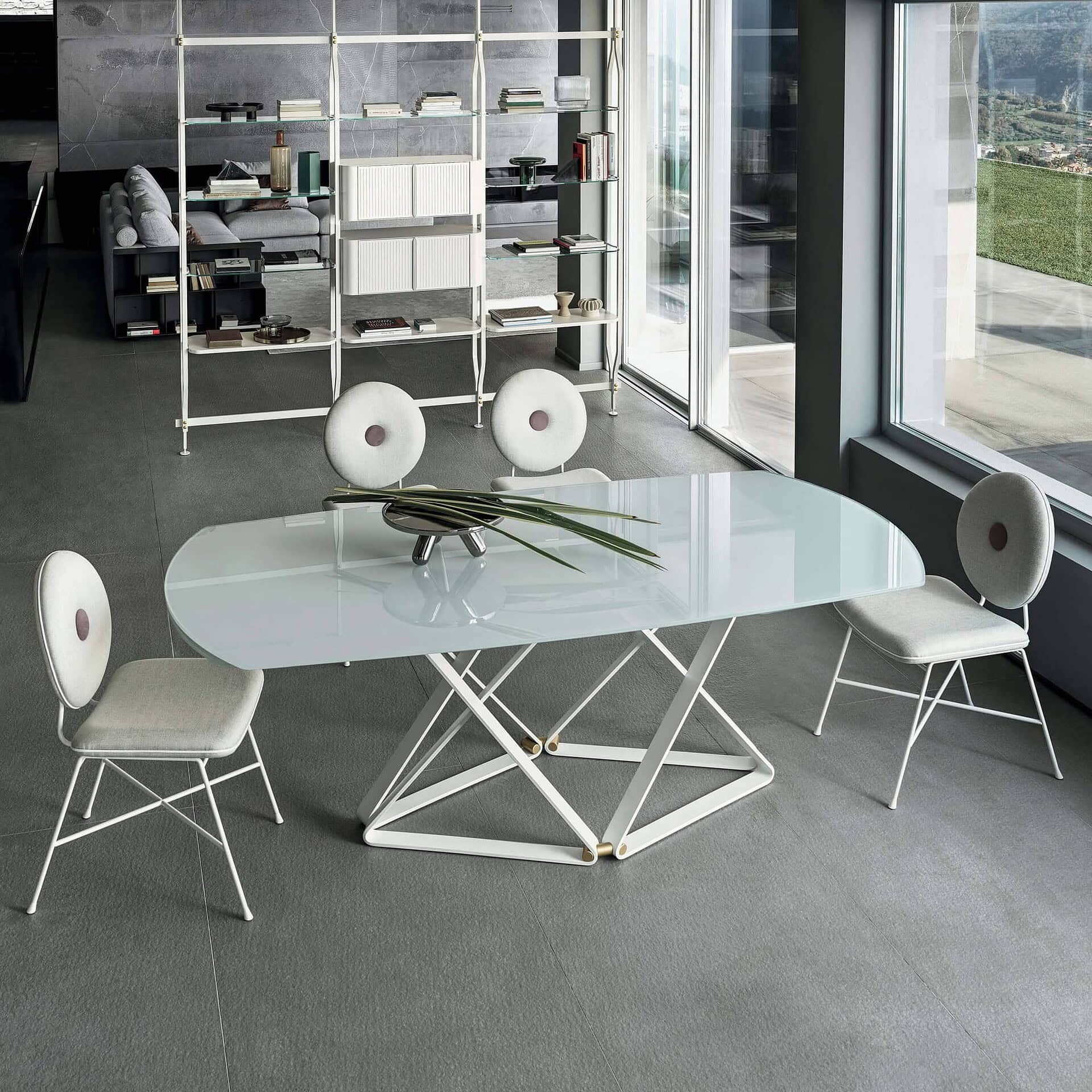 The Delta Modern Extendable Dining Table by Bontempi blends bold architectural character with refined versatility, defined by its angular metal base and clean, sculptural silhouette. Designed to adapt effortlessly to evolving spaces, Delta transitions seamlessly from a compact everyday table to an expansive dining surface, maintaining a strong visual presence in both intimate and open-plan interiors. Its dynamic form brings a sense of structure and movement, balancing functional performance with modern design clarity.
