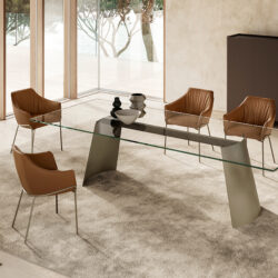 Be bold and unique in your dining space with the Dorian Dining Table with a glass top, a sleek piece that exudes elegance and timeless appeal.