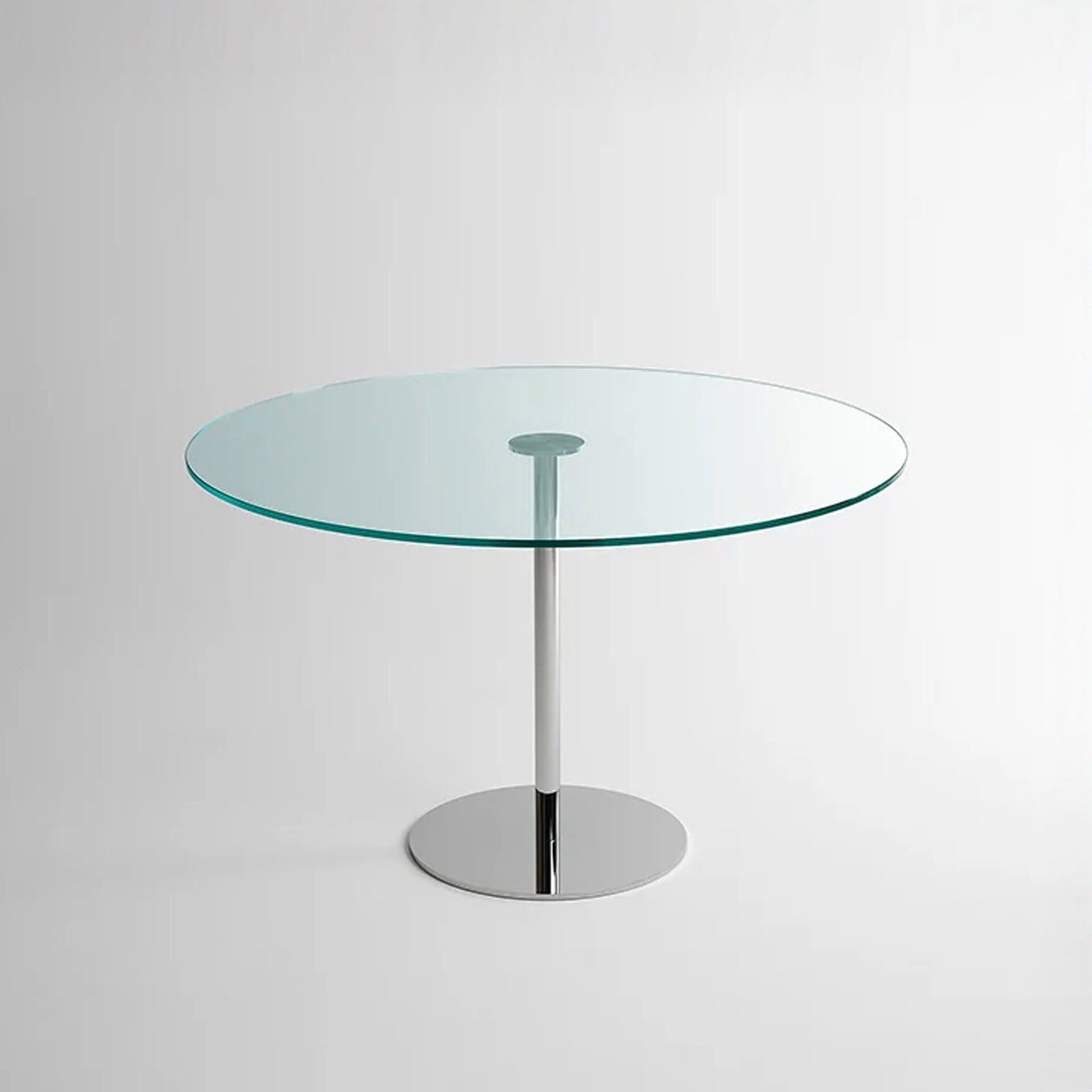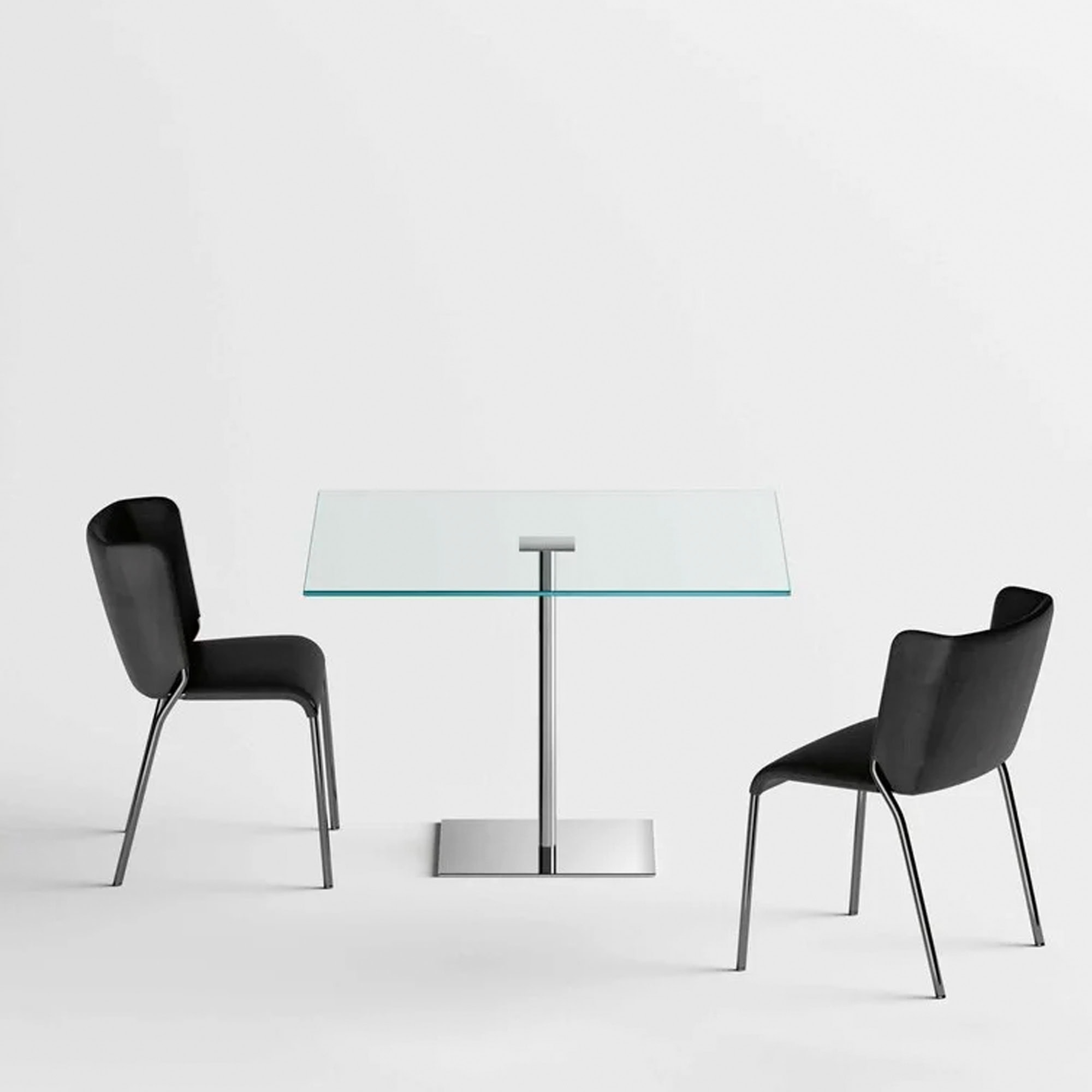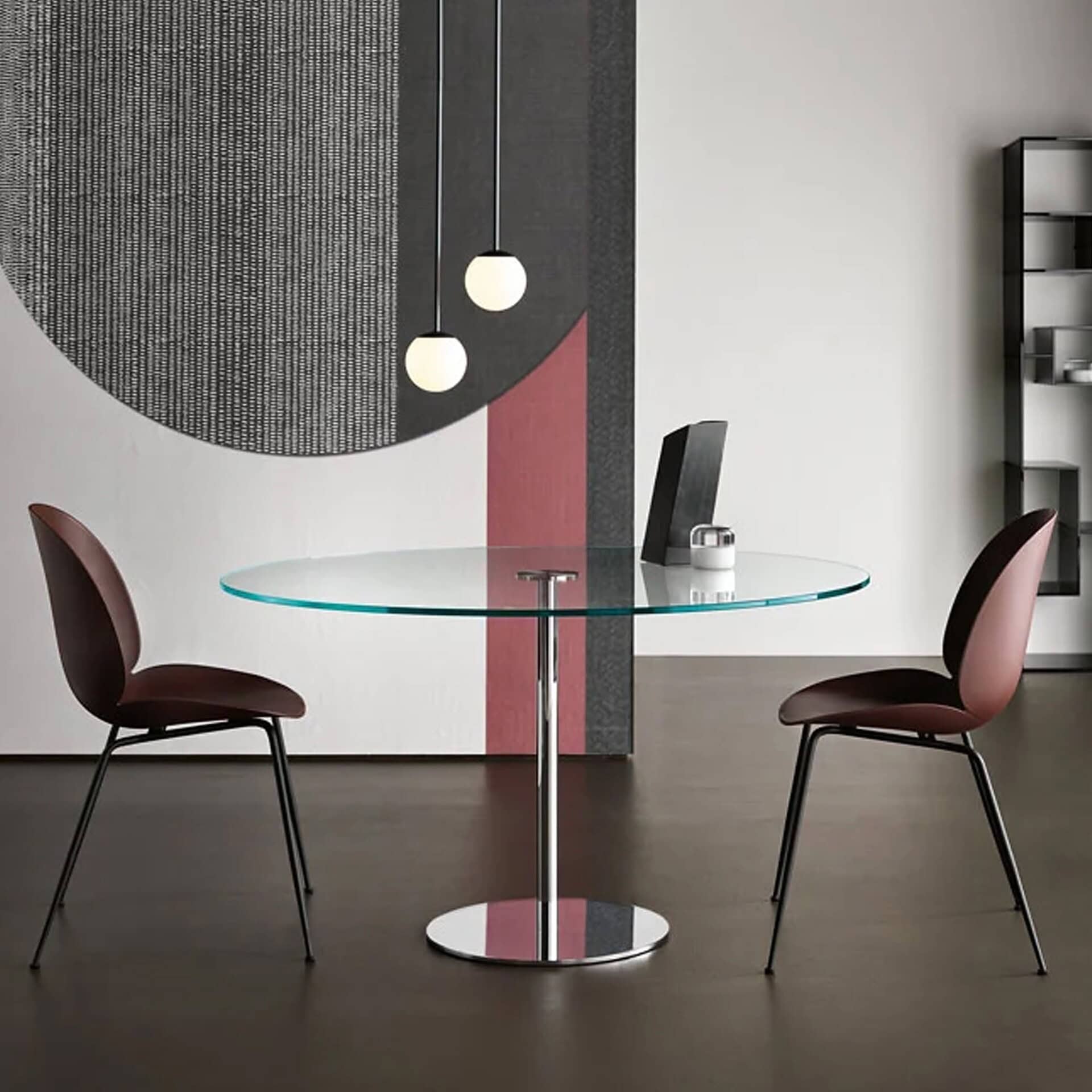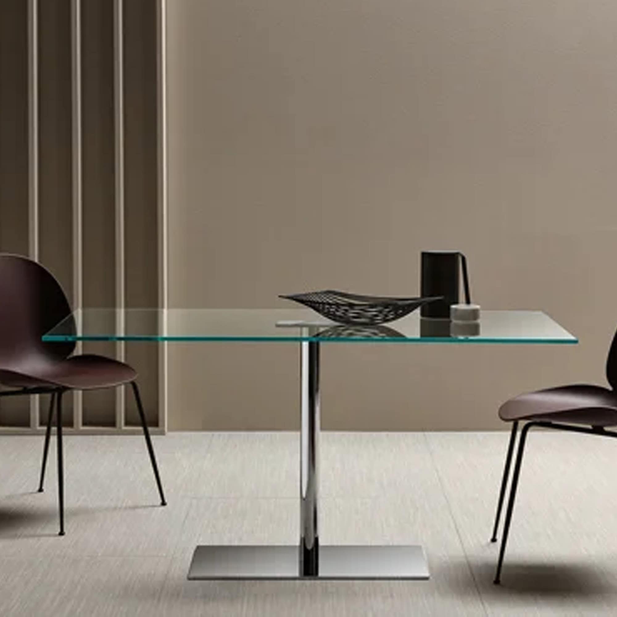 Refined and architectural, the Farneinte Dining Table by designer Giovanni Tommaso Garattoni showcases a balance of simplicity and luxury. Its clean, geometric lines bring a sophisticated modern edge to any interior, while the sleek glass top rests atop a bold metal base for visual contrast. Available in round, square, and rectangular variations, this striking table lends itself beautifully to dining rooms, kitchens, and studio settings alike.