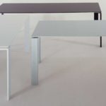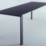 Four is available in varnished steel and a 1″ thick table top in stratified laminate.