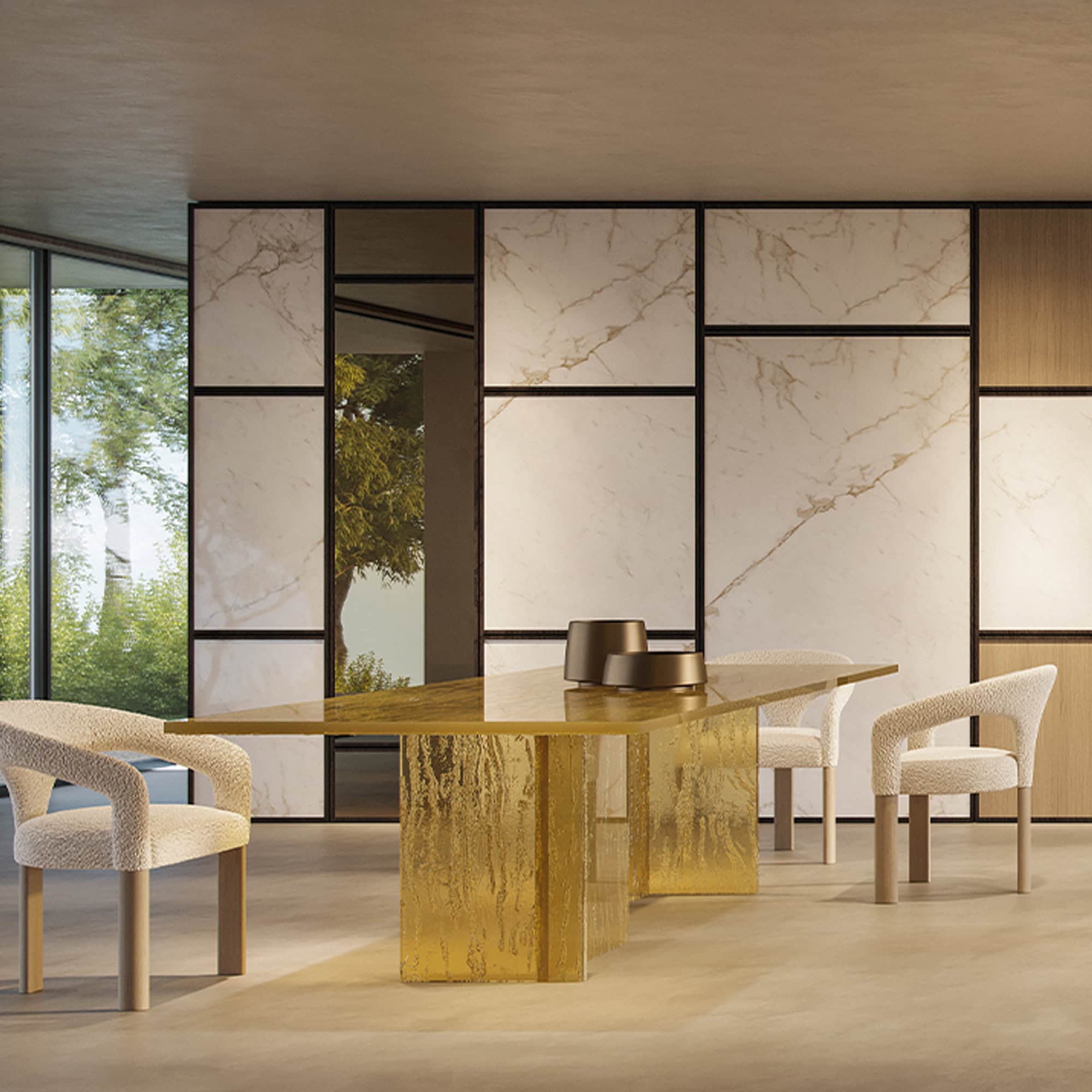 Offered in either transparent or amber-fused glass, Laguna 72 emphasizes the elegance of simplicity. With its substantial thickness and timeless silhouette, it is ideal for refined dining spaces seeking a sophisticated and artisanal presence.