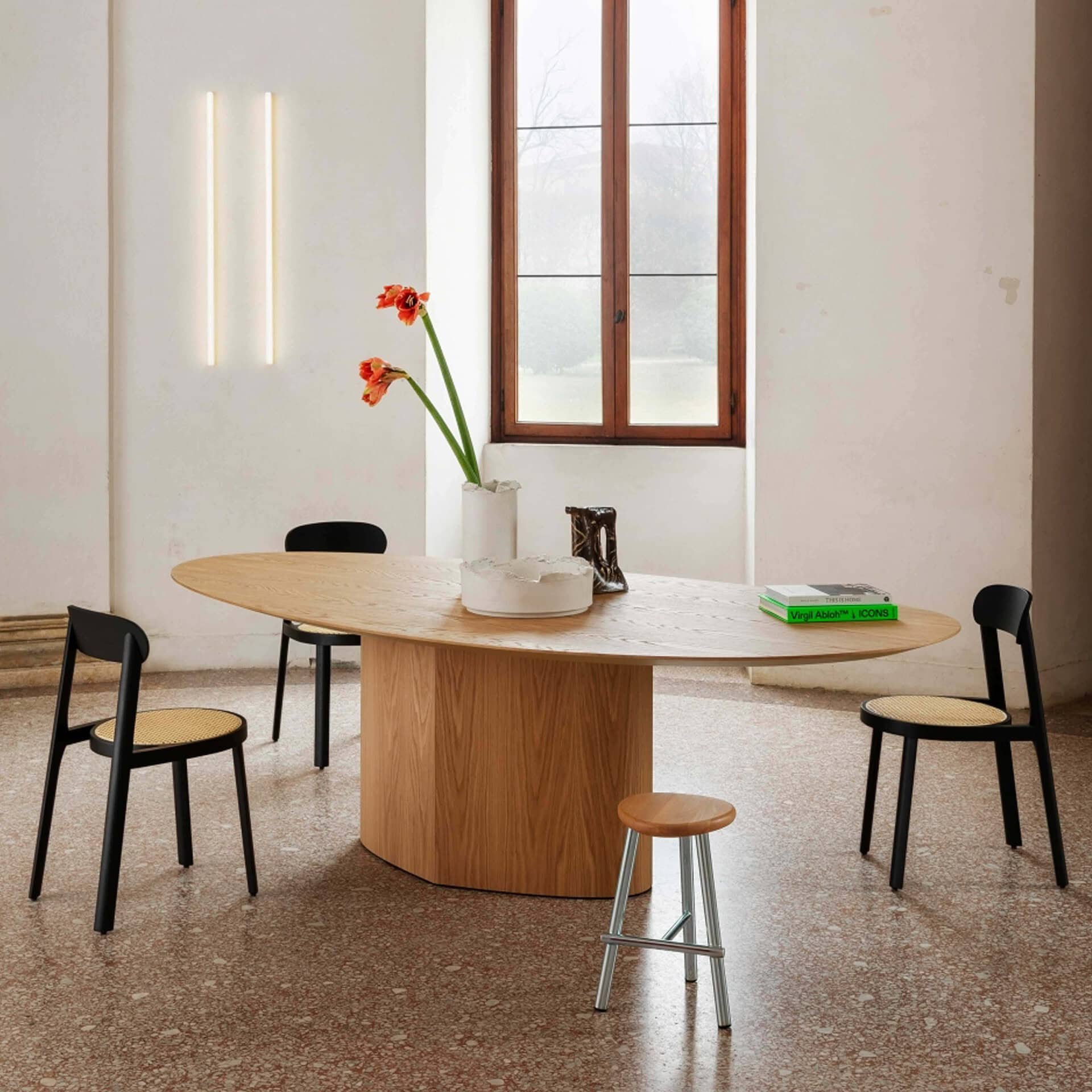 The Monoplauto Dining Table is perfect for modern, minimalistic decor. It features a unique, monolithic design that is sure to draw attention and make any room stand out. The single leg is made of solid wood and gives the table a sturdy, yet lightweight feel. The top is crafted from a combination of wood and metal for a modern, industrial look. With its timeless design, this piece is sure to last for many years to come.