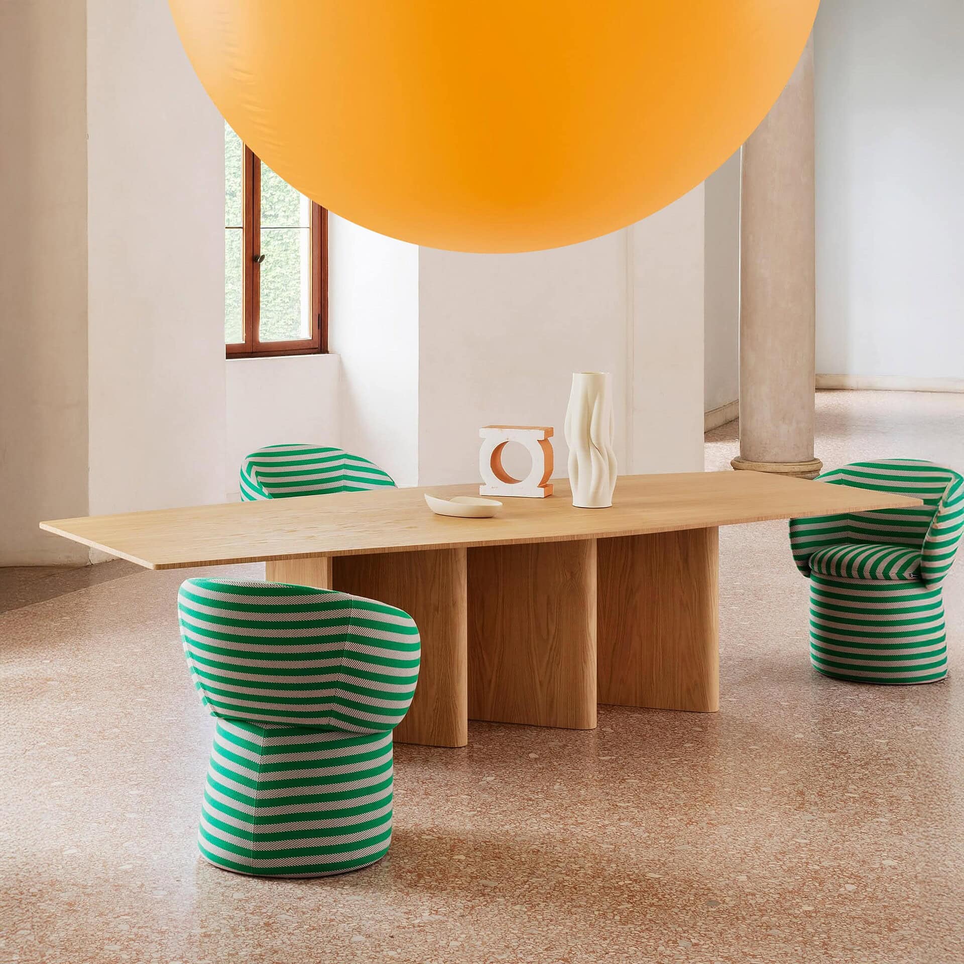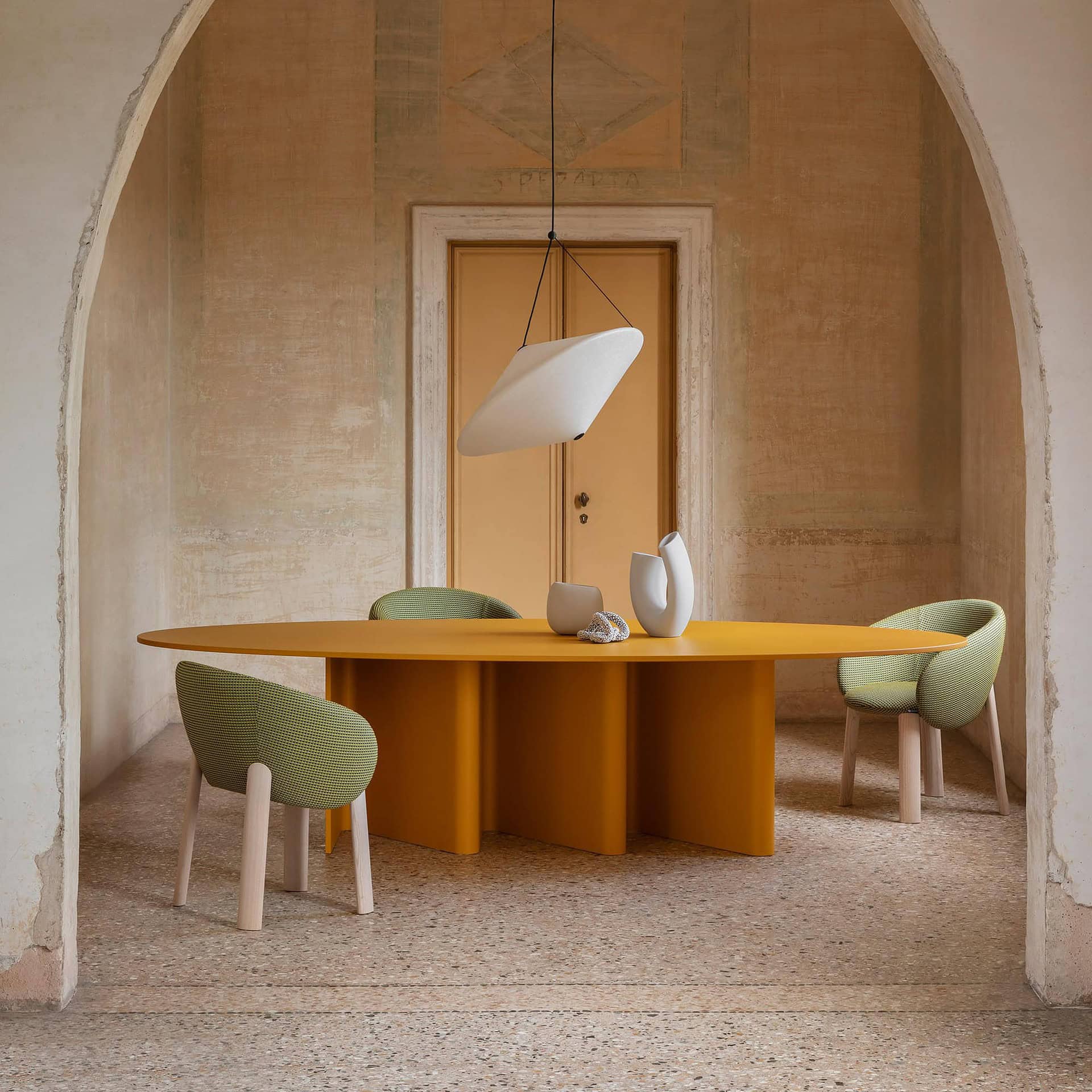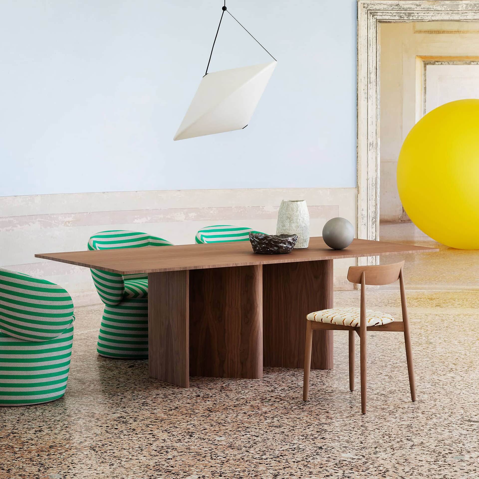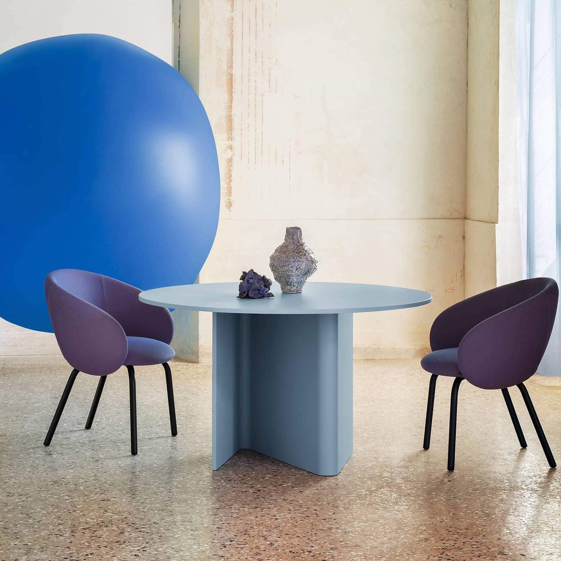 Crafted with a bent wood base and available in a selection of rich finishes, Nami’s table tops can be round, oval, barrel-shaped, or rectangular, in sizes from 130 cm to 300 cm. Finishes include lacquer in 13 NCS-matched hues, premium woods like Flamed Oak, Canaletto Walnut, or Black Ash, and select options in luxurious marble or stoneware such as Calacatta Black or Statuario Bianco. With its sculptural form and versatile customization, Nami is a refined yet distinctive centerpiece for any dining room.