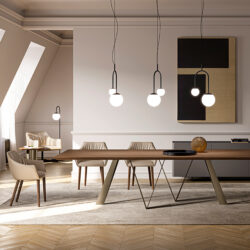 The Noa Dining Table is symmetrically elegant and refined for the dining room. With ample space to serve and entertain, this is a bold choice that will leave a lasting impression for years beyond. This is a timeless dining table that will never go out of style, featuring a painted metal base and top in veneered wood round, rectangular or shaped, with oblique edges in 38 mm thickness.