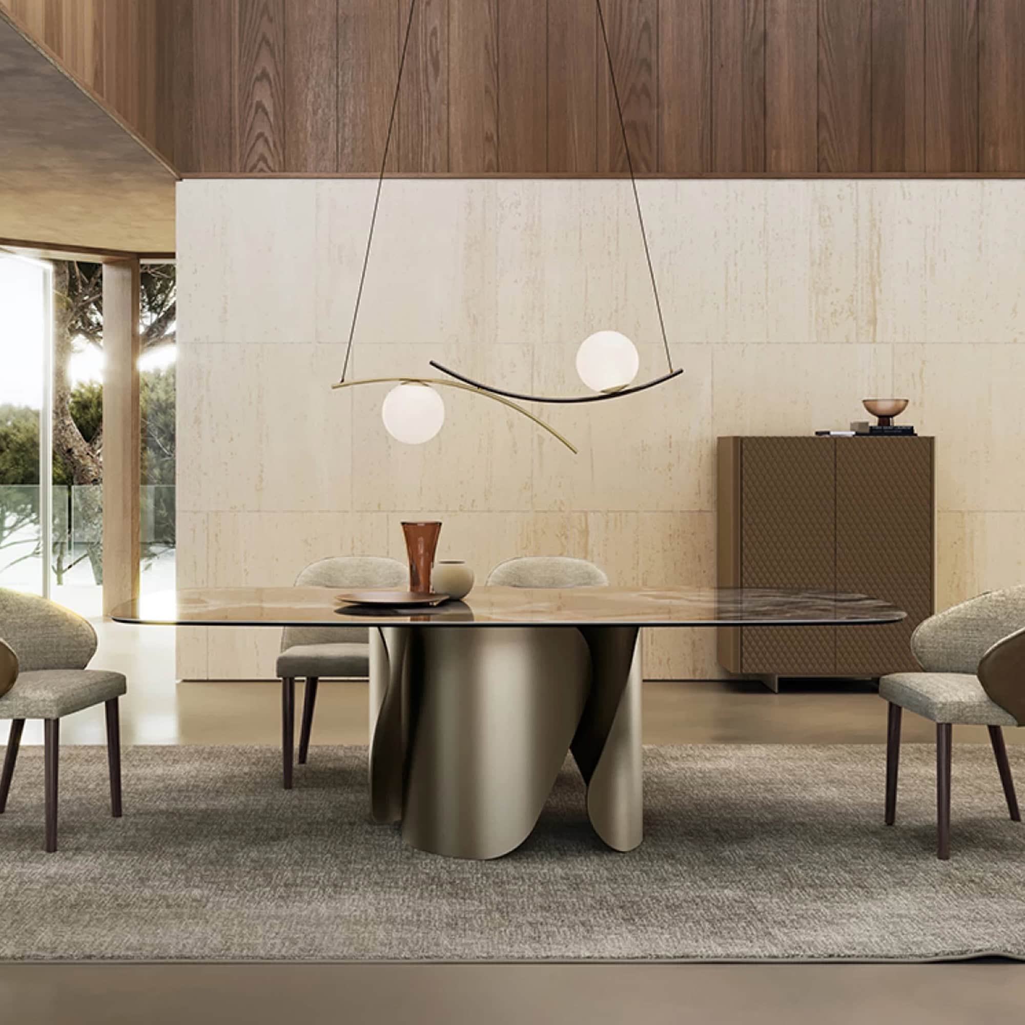 The Onda Ceramic Dining Table by Nello Palomba is a bold yet elegant centerpiece that merges sculptural form with luxurious materials. Its sweeping, fluid base creates a sense of movement from every angle, while the ceramic top offers both beauty and durability. Designed for those who appreciate architectural furniture, Onda makes a refined statement whether chosen for a contemporary dining room or a large gathering space. Available in standard, XL, and King versions, it provides ample size options to accommodate both intimate dining and grand occasions.
