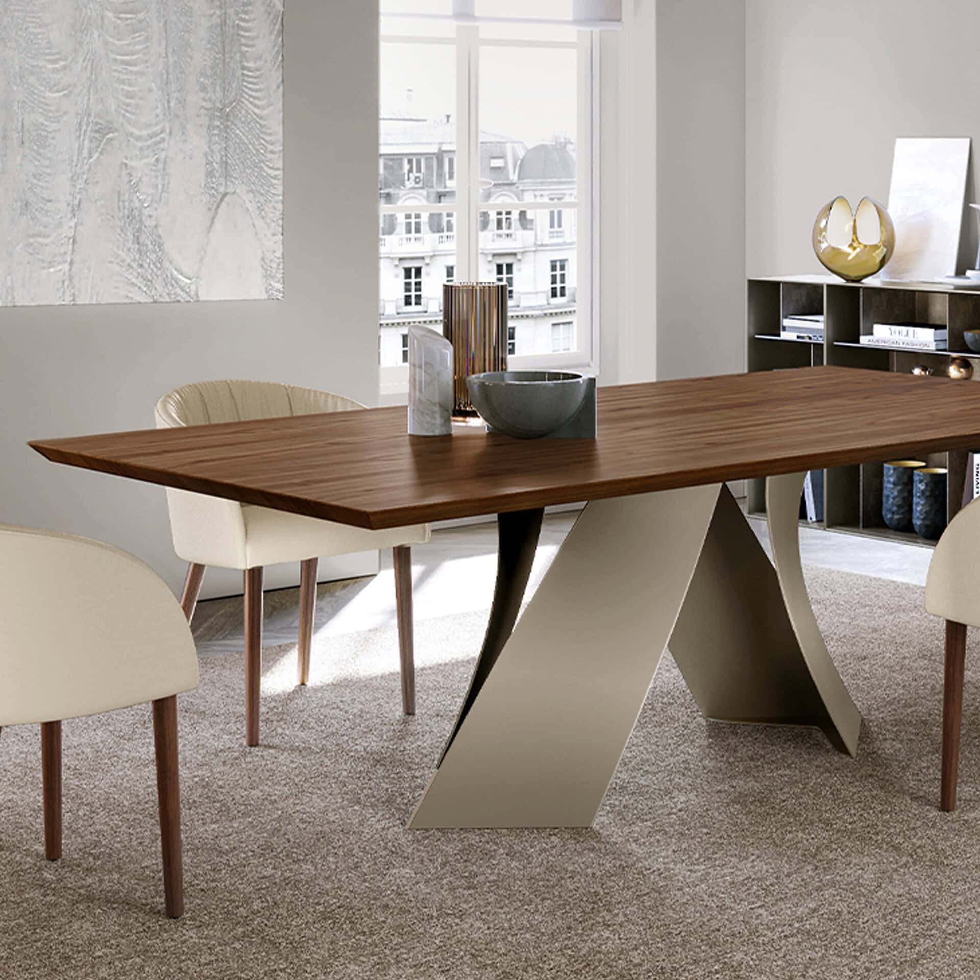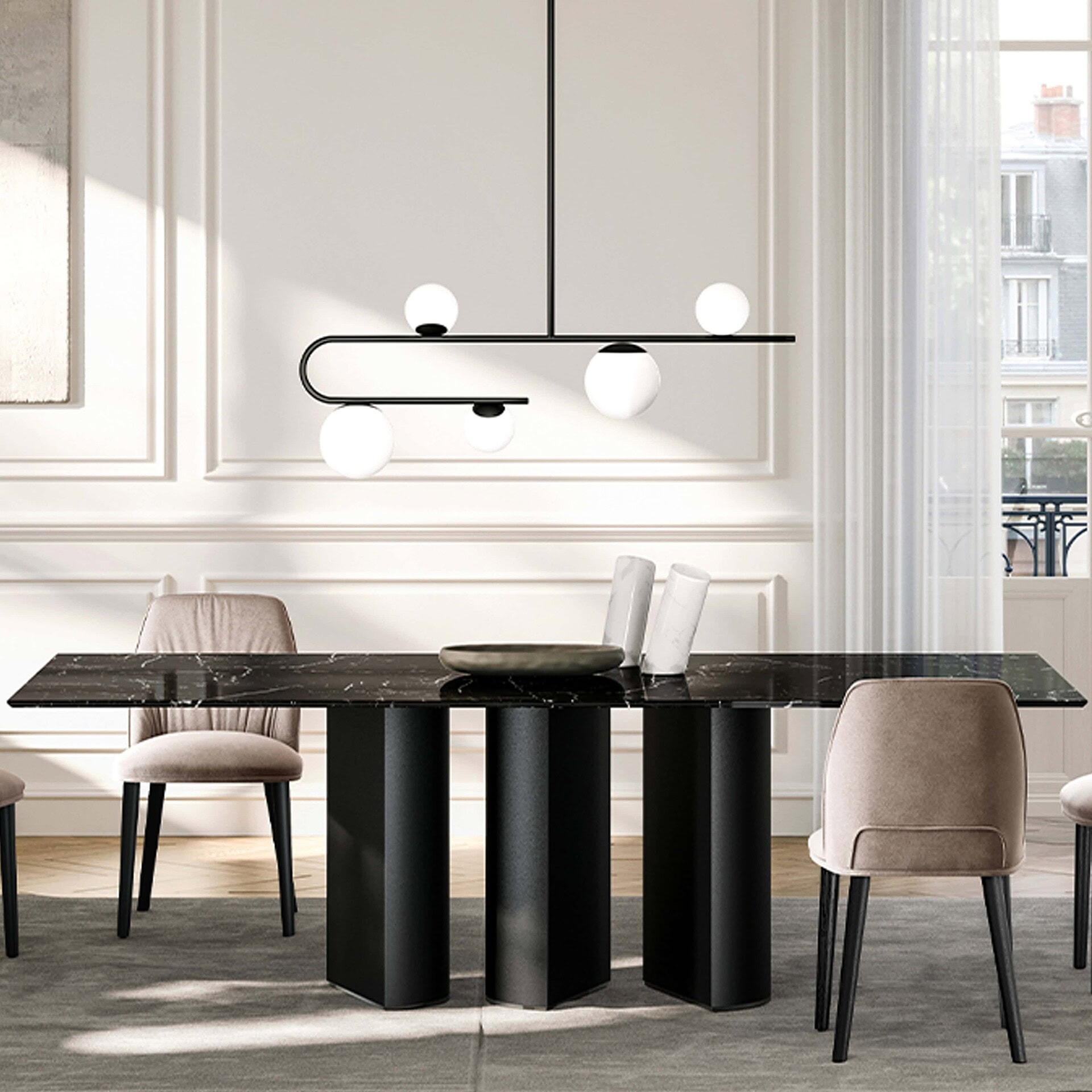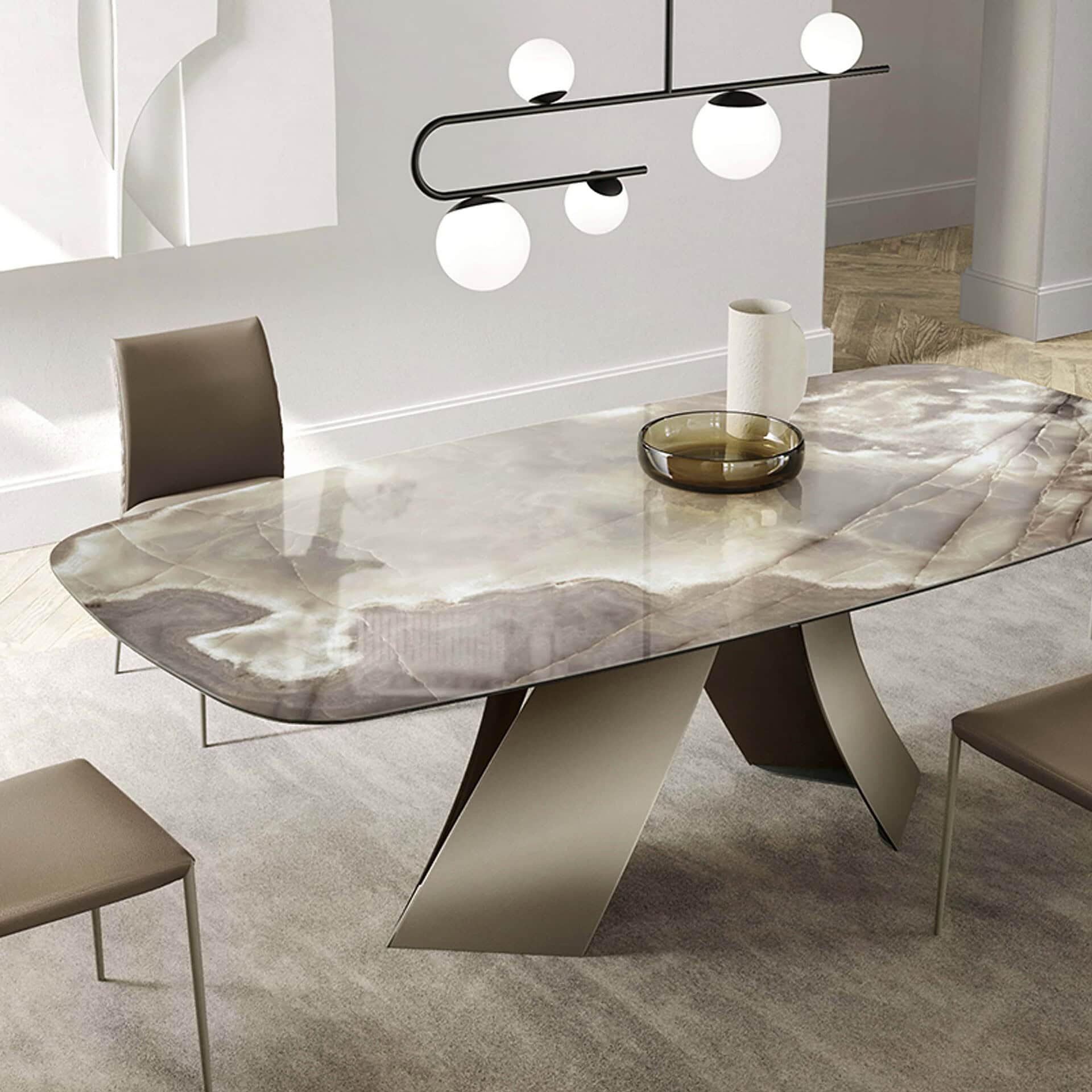 The Onda Sculptural Dining Table is an expression of movement and balance, designed to anchor contemporary interiors with elegance and presence. Defined by its central base of softly rounded metal legs, Onda creates a fluid architectural rhythm that evolves with every angle of view. The enveloping structure gives the table a dynamic, almost kinetic quality—making it equally compelling in refined dining rooms, expansive living spaces, and statement-driven environments where design takes center stage.