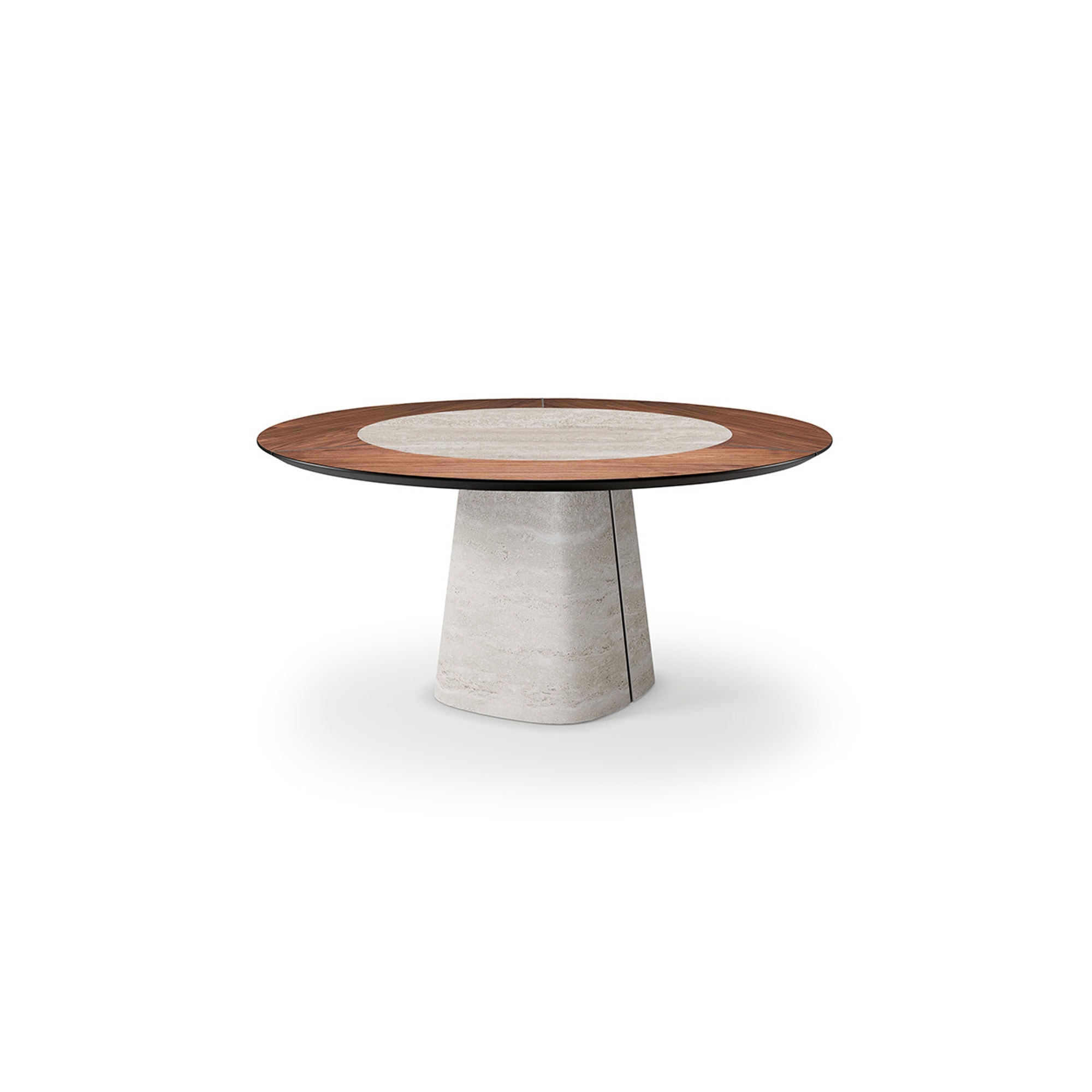 Designed with versatility in mind, the Rado Ker-Wood Round Dining Table is available with a ceramic insert that adds an artistic focal point. For enhanced functionality, the “T” version includes a swiveling ceramic insert, making serving and sharing effortless. Each base features subtle natural variations in color and texture, celebrating artisanal craftsmanship and ensuring that every table is a one-of-a-kind statement.