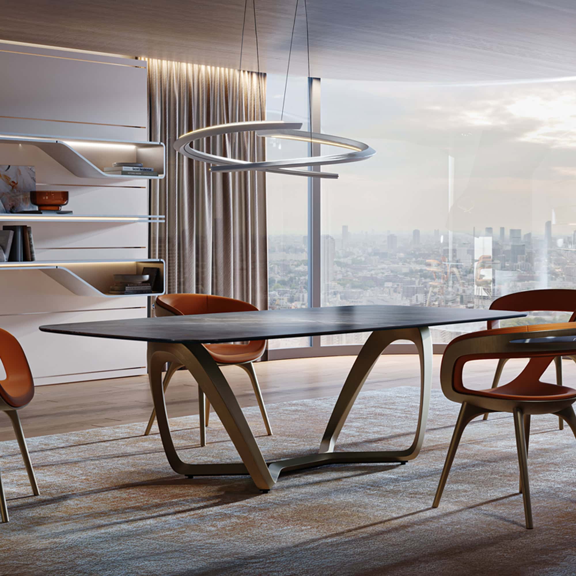 Designed with customization in mind, the Segno 72 offers various shapes and sizes, including rectangular and square-round versions. Paired with exquisite finishes such as polished edges, bevel wood, or the signature Marmoreflex and Legnoreflex glass, this table brings sophistication and functionality together. Its sculptural form and premium materials make it ideal for those seeking both durability and timeless style.