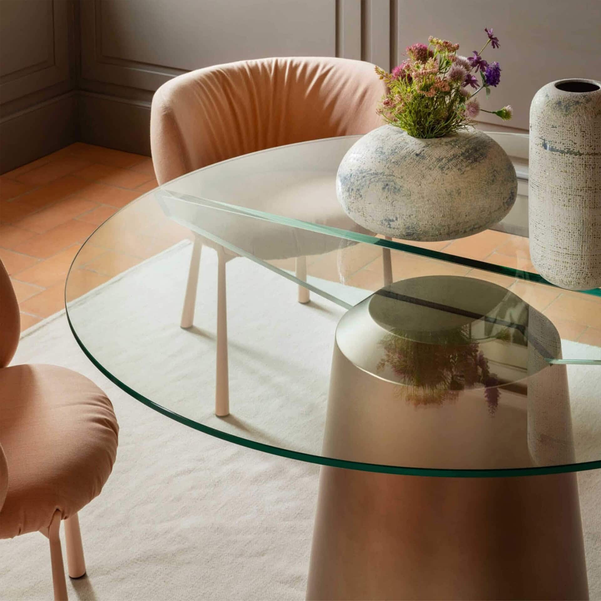 [vc_row][vc_column][vc_column_text css=""]Offered in three generous sizes, the Spike Dining Table comfortably accommodates both intimate dinners and larger gatherings. The metal base is available in a wide variety of matte and glossy finishes, allowing for full customization to match your space and aesthetic. Whether you opt for a minimalist all-glass look or pair contrasting tones for added drama, this Made-in-Italy piece is a functional work of art.[/vc_column_text][/vc_column][/vc_row]