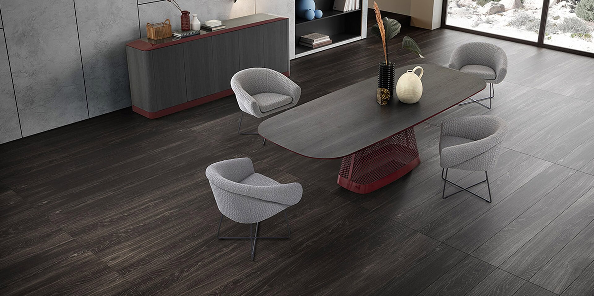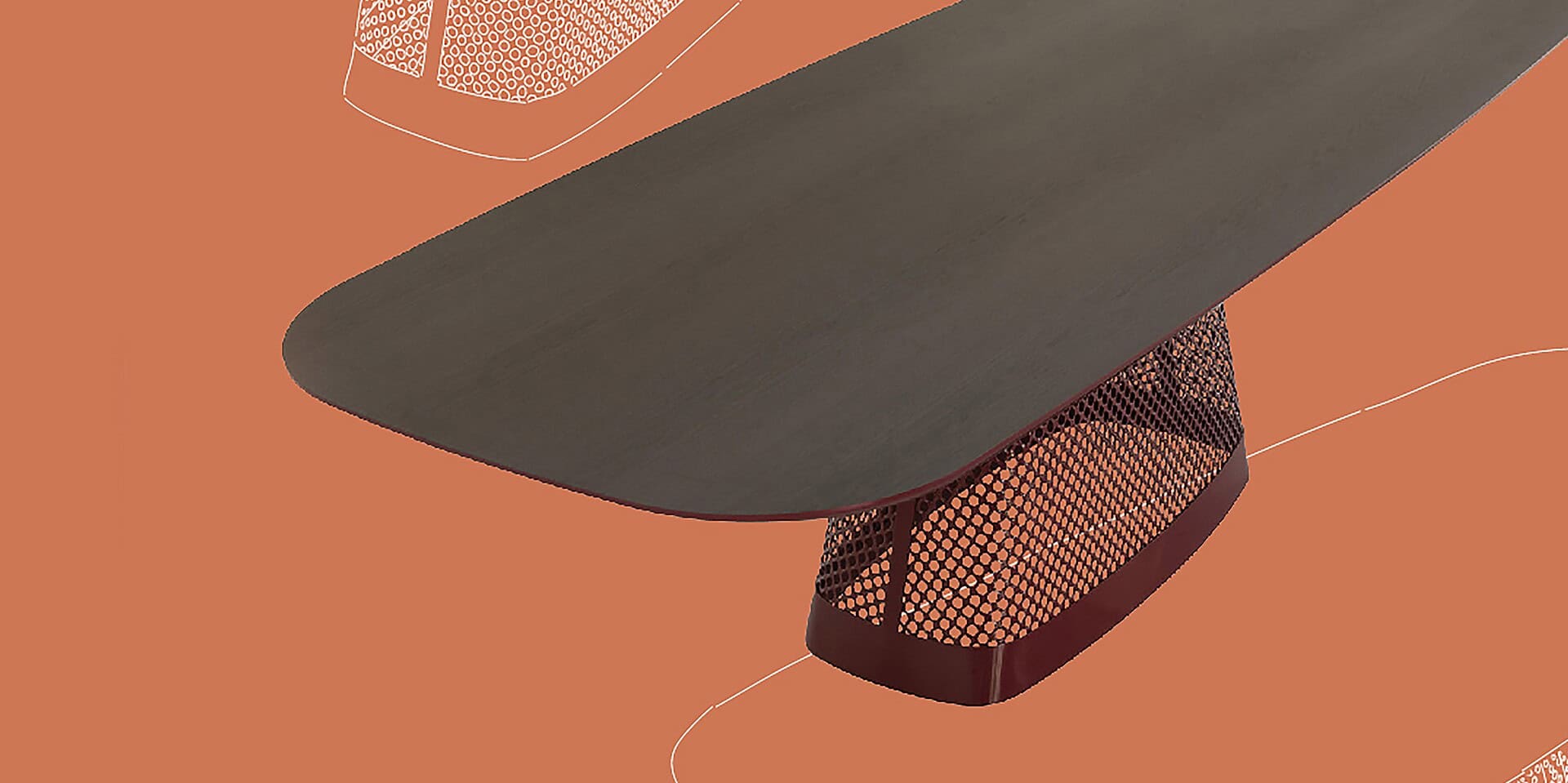 The Tracer Table collection features low tables that are designed with a powerful personality. The hallmark feature of the clean, imposing shape of the base is sheet metal, which ensures an extremely innovative lightweight look. Like the base, every detail of the top has also been carefully designed to create a new, flared shape which is showcased by the use of lacquer that can be selected to match the base.