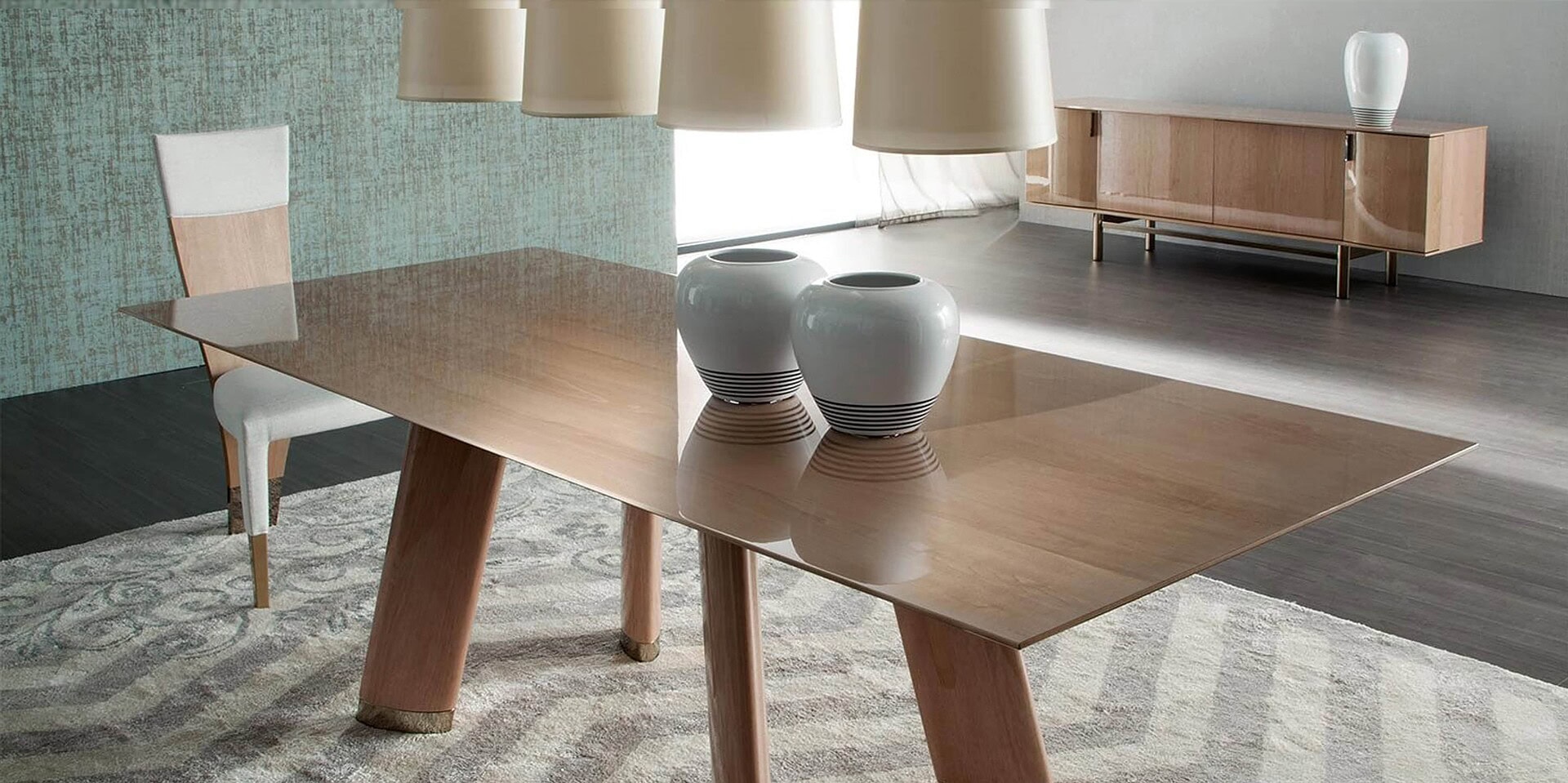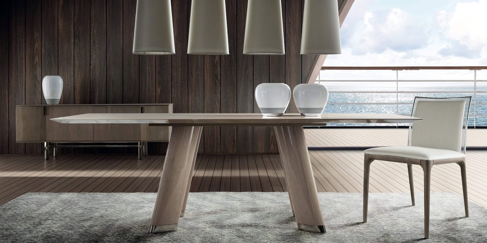 With a distinguished composition and geometric sculptural base, the Trend Dining Table is a sensational statement piece for any dining room.
