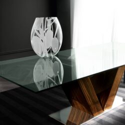 V is for Vanity, which serves as the centerpiece of this stunningly modern table. Its V-shaped base and premium materials complement each other perfectly.