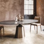 The pedestal-style base of the Yoda Dining Table is reminiscent of a chess piece. It supports a top in your choice of clear or extra clear glass.