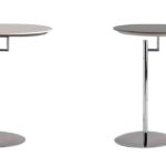The Circus Alto Side Table is modern and appealing, with a design that works well in any environment. With a simple form that fits into a variety of spacial requirements, the piece offers one table surface that rotates on a polished chrome-plated base. Pearl grey or dark grey lacquer on the table's fibreboard tops give the table a chic finish. Warranted to meet or exceed industry standards.
