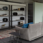 Soffio leather; polished chrome-plated metal; fibreboard.