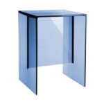 A "monolith" of a stool/ side table, the Kartell Max Beam Side Table is composed of transparent plastic and is of modest size. Its considerable thickness emphasizes its geometric purity. The stool or side table is dyed in a variety of fun and vibrant colors.