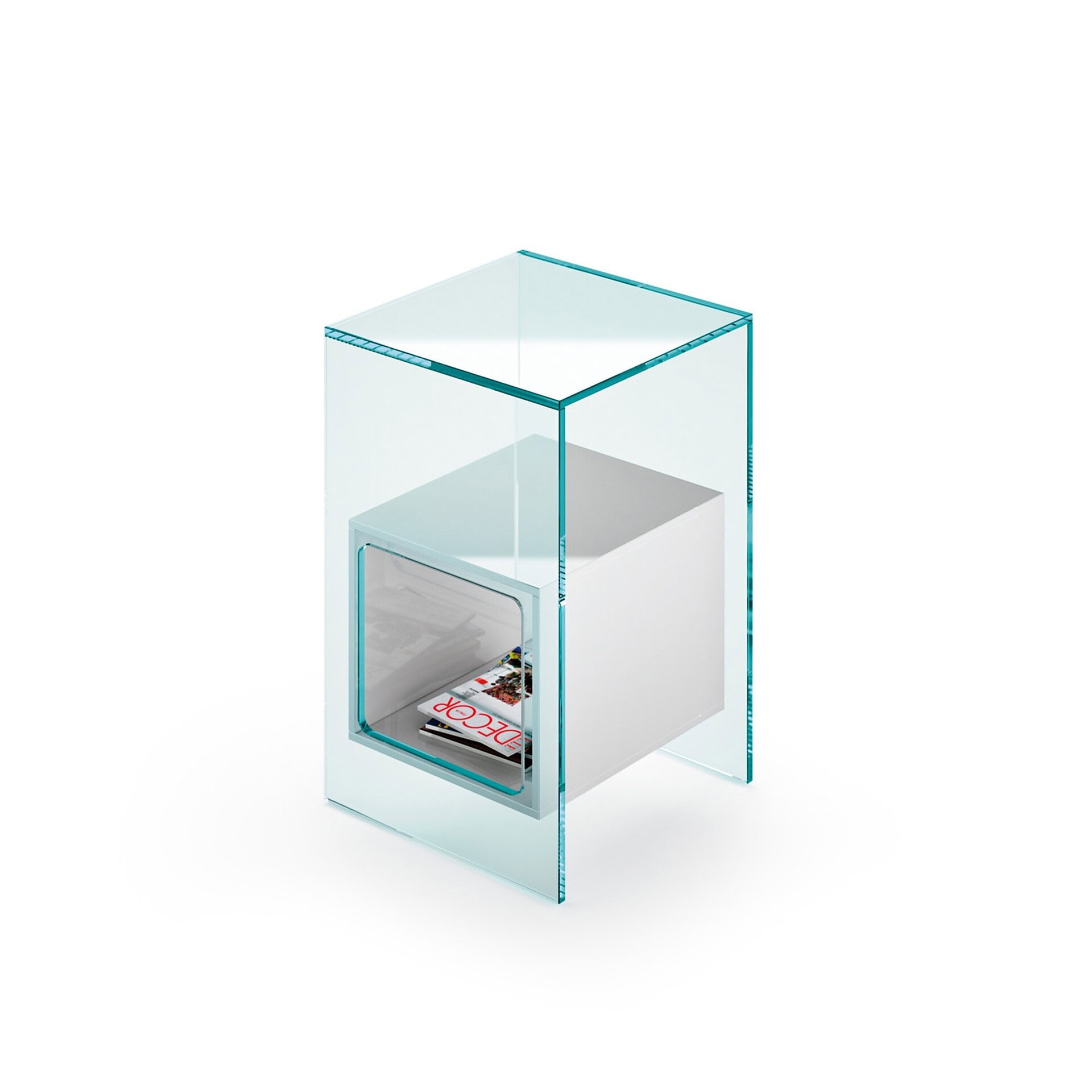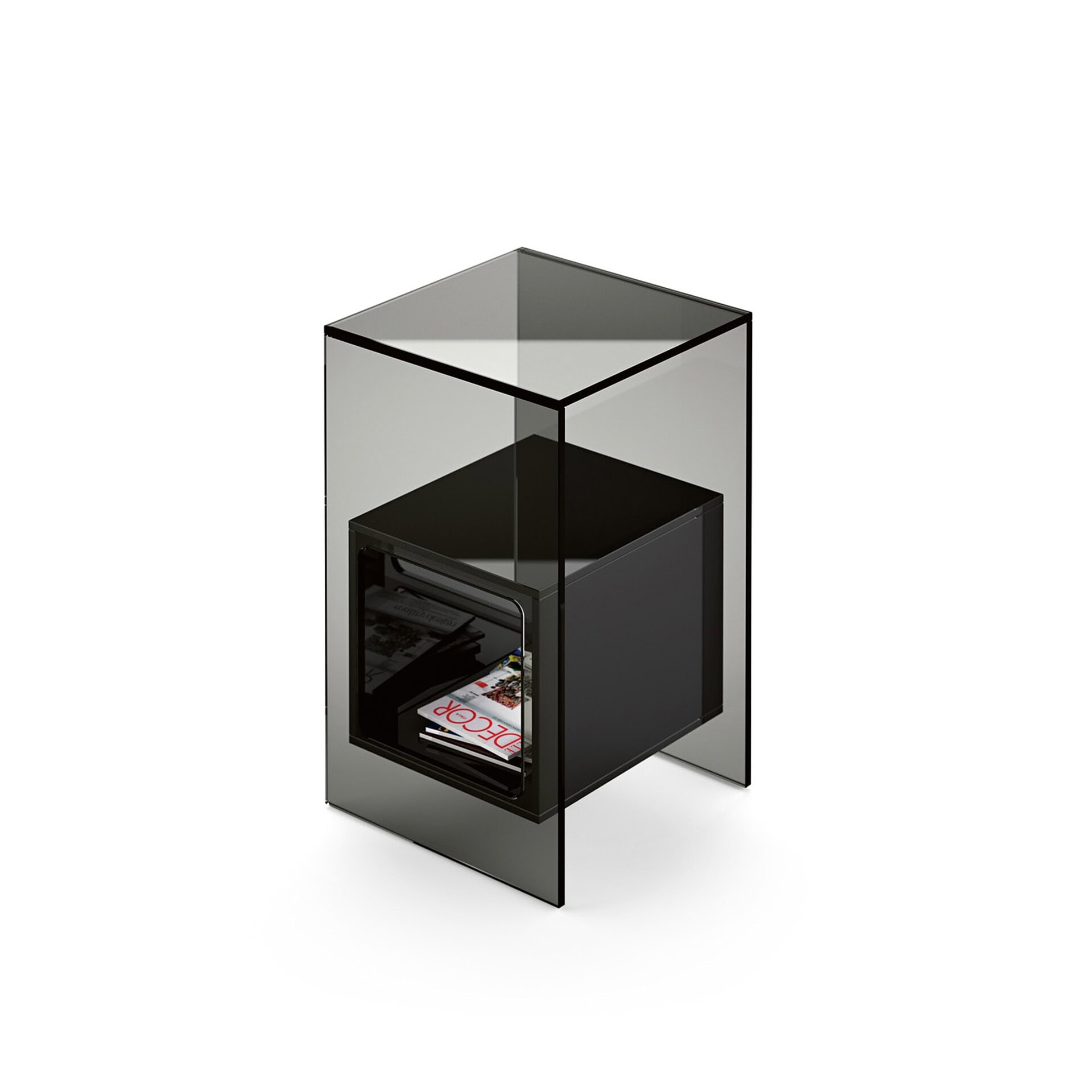 [vc_row][vc_column][vc_column_text css=""]Crafted entirely from 10 mm-thick welded glass, the Magique Side Table is available in a wide range of finish combinations for both the structure and the inner compartment. Glass options include transparent, extralight, smoked grey, bronze, opal white, black95, and blue. Each finish introduces a unique mood and level of opacity, enabling creative coordination with surrounding furniture. The table supports up to 20 kg on its surface and is made in Italy to the highest standards of craftsmanship.[/vc_column_text][/vc_column][/vc_row]
