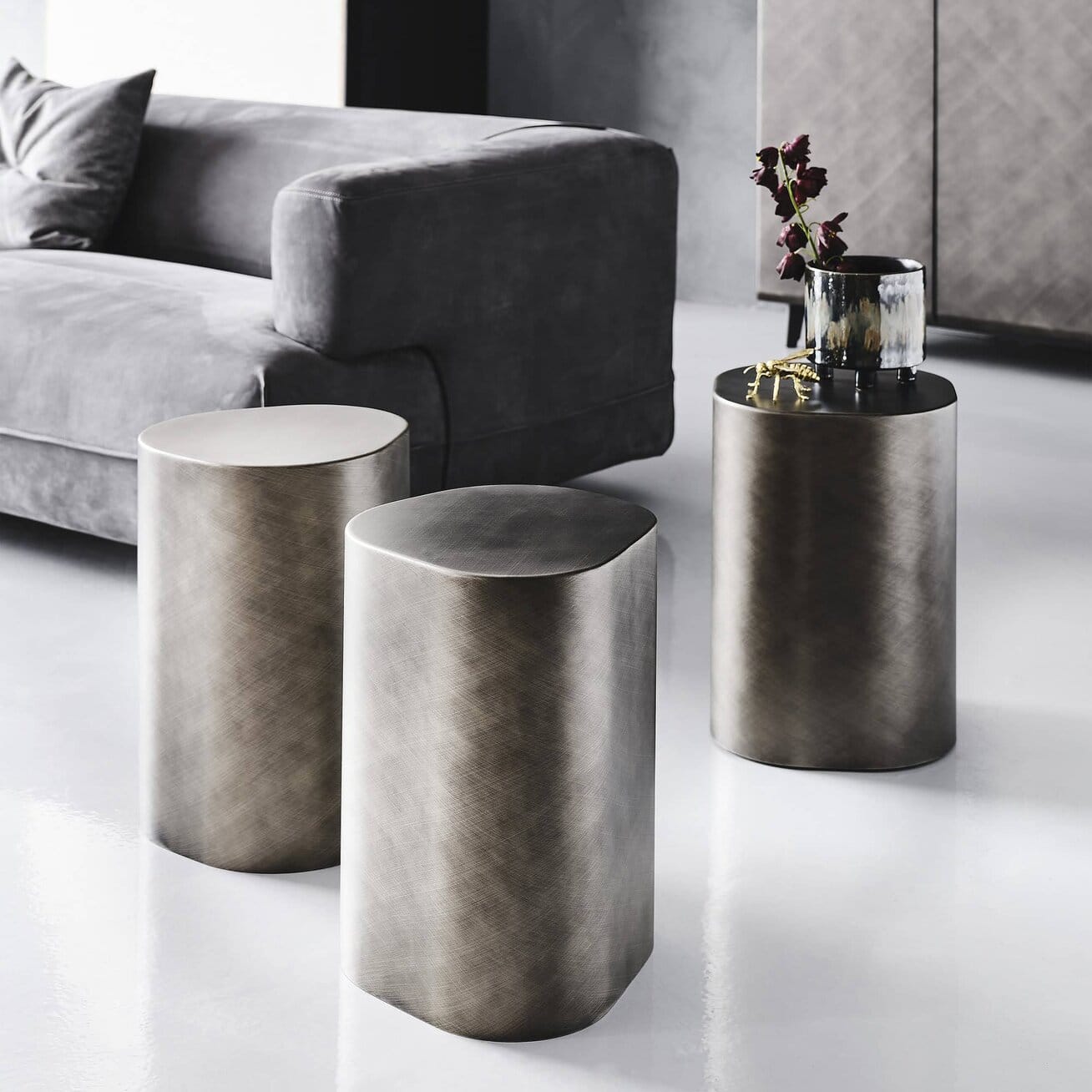 Elevate your space with the sculptural elegance of the Pancho Side Table by Cattelan Italia. Crafted in a monolithic form with a distinctive handcrafted finish, Pancho offers an artful interplay of curves and texture. Its drum-like silhouette makes it a bold accent piece in modern living areas, whether used alone or styled in multiples. The brushed metal surface catches light subtly, adding depth and visual interest without overwhelming the space.