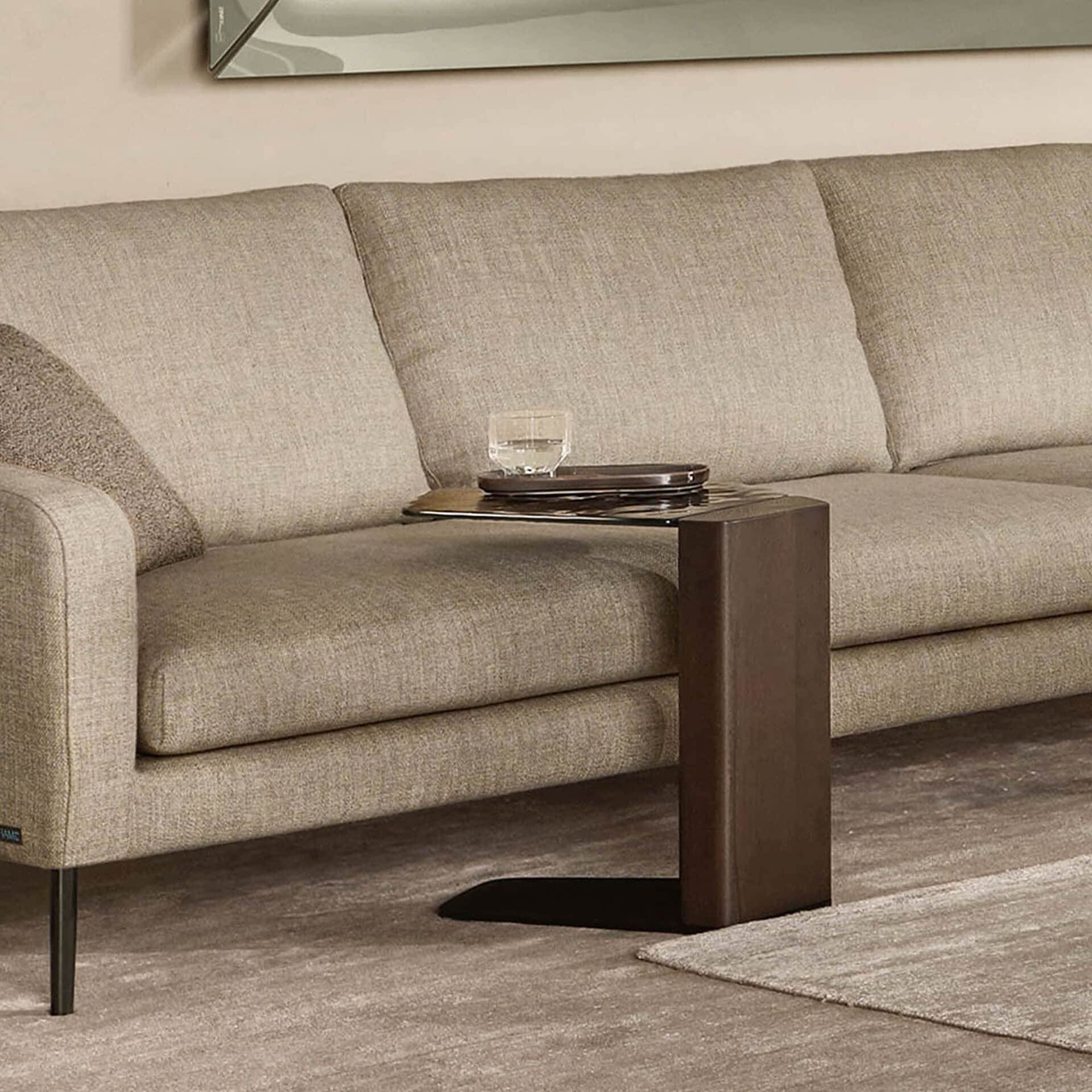 Offered in two sophisticated finishes, the top is crafted from 10 mm fused glass and back-painted in either Nero (black) or Testa di Moro (dark brown). The solid wood structure complements these tones with finishes in Black or Tobacco, while a lacquered black metal base provides a sleek and grounded foundation. Compact yet sturdy, the Stone table can support up to 10 kg on its surface—an ideal blend of form and function.