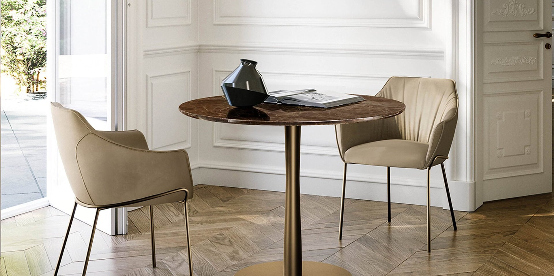 Make way for the Filù Bistro with a marble top, an effortlessly simplistic and modern bistro table that elevates and stuns equally the same.