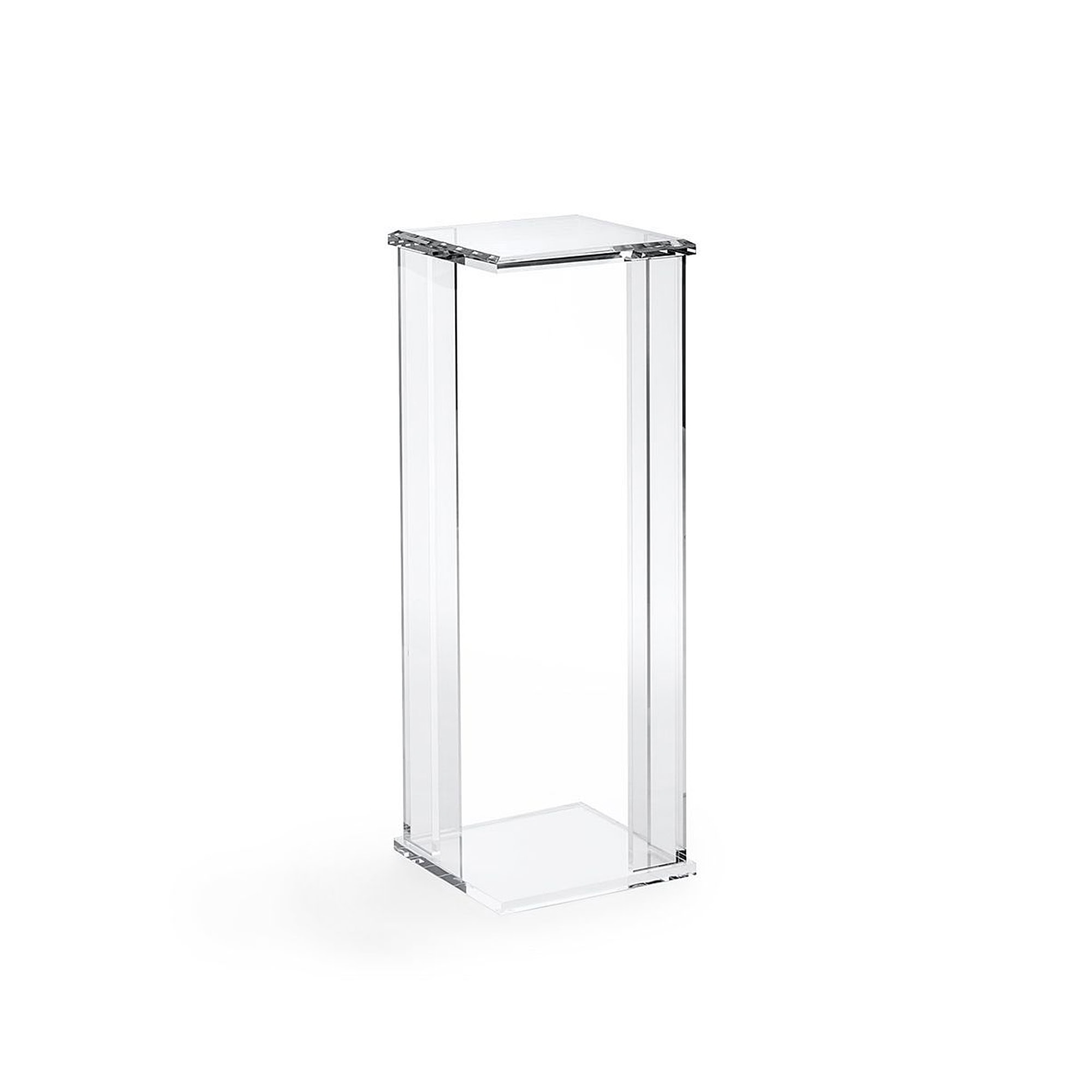 Expertly crafted from high-quality clear acrylic, the Logan Pedestal features a polished finish that reflects and refracts surrounding light for an airy, sculptural effect. The inset glass top adds a subtle contrast in texture while enhancing the pedestal's functionality as a display surface.