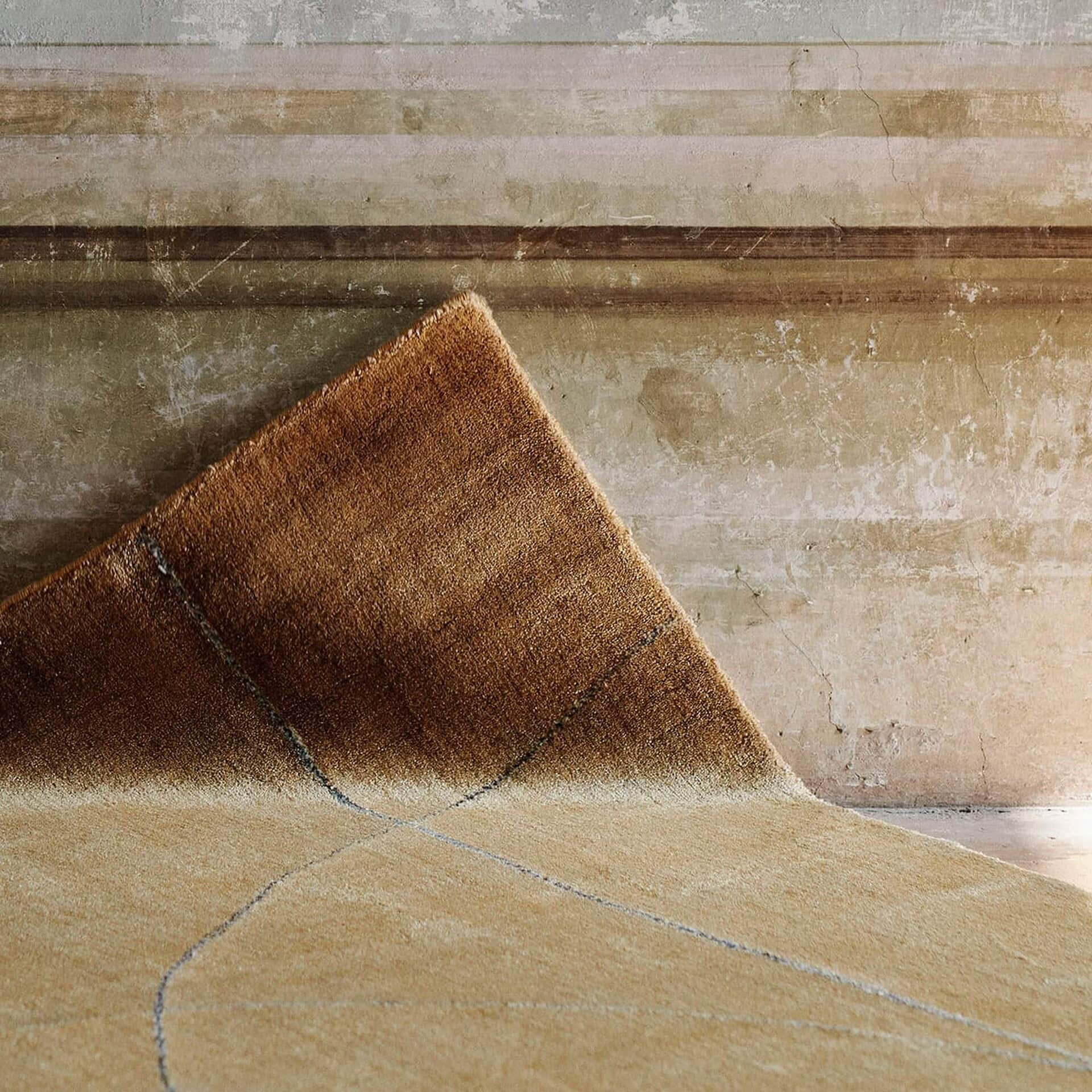 Loom-knotted construction in 95% viscose and 5% New Zealand wool with cotton warp. The 10 mm pile delivers a rich, lustrous finish with added warmth and texture.